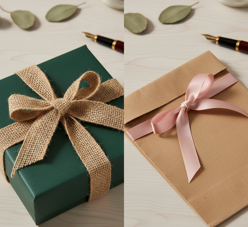 Secretul unui ambalaj "cozy" stă în jocul de texturi. Dacă ai o cutie elegantă sau o pungă simplă, adaugă un element de contrast. O panglică din iută sau sfoară naturală va adăuga o notă rustică și autentică. Dacă folosești hârtie de ambalat simplă, o panglică din satin fin va aduce un plus de rafinament.