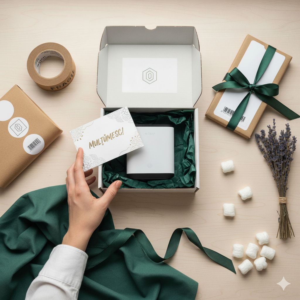 Un ambalaj cu adevărat profesionist este și funcțional. Alege cutii rezistente și refolosibile din carton gros. O cutie frumoasă nu este aruncată, ci păstrată pentru depozitare sau pentru alte cadouri. Astfel, oferi clientului tău un impact de durată, iar ambalajul devine o extensie a darului în sine.