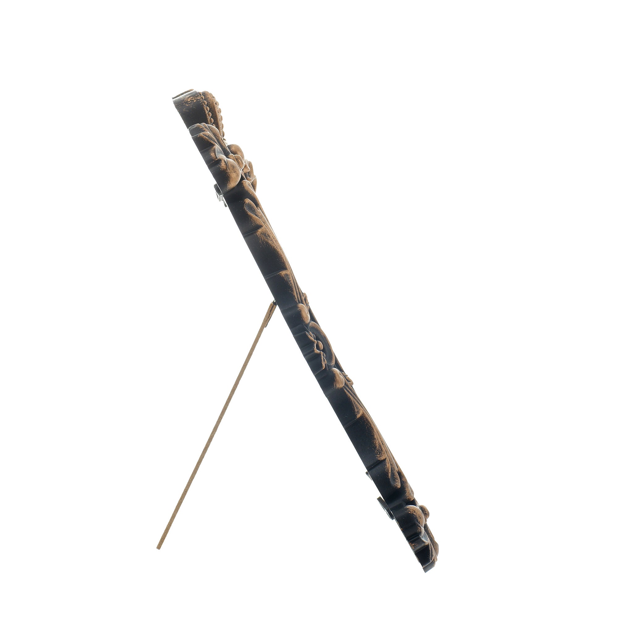 Ramă foto decorativă cu aspect vintage, finisată cu auriu și detalii ornamentale în relief. Poate fi folosită ca obiect decorativ în locuințe sau ca element simbolic pentru evenimente speciale.