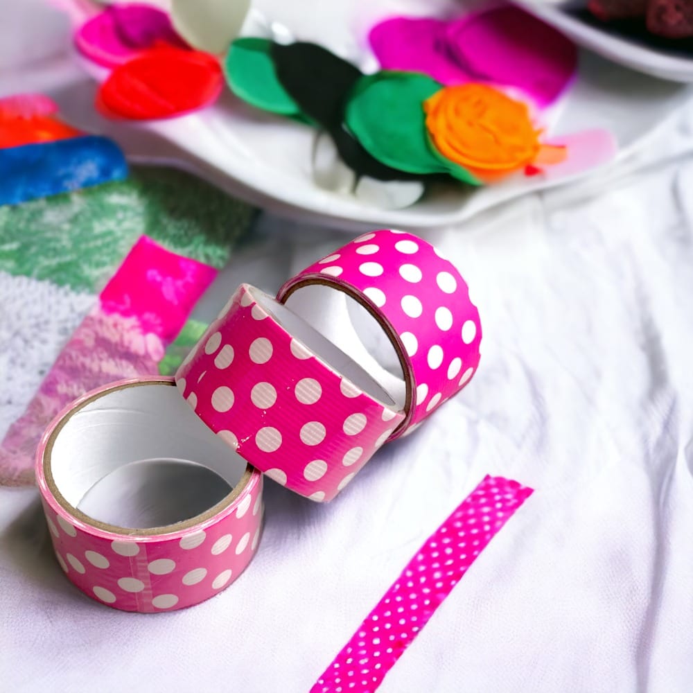 Bandă adezivă cu model - tipar roz 4.8cm x 5m este un produs practic și stilat, ideal pentru diverse proiecte și activități.