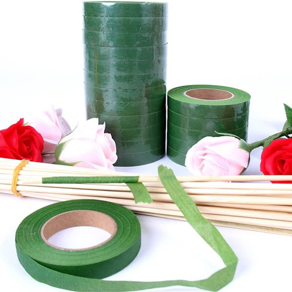 Bandă floristică verde (set de 12 role) 1.2cm x 27m este un material indispensabil pentru realizarea aranjamentelor florale și a proiectelor de artiz