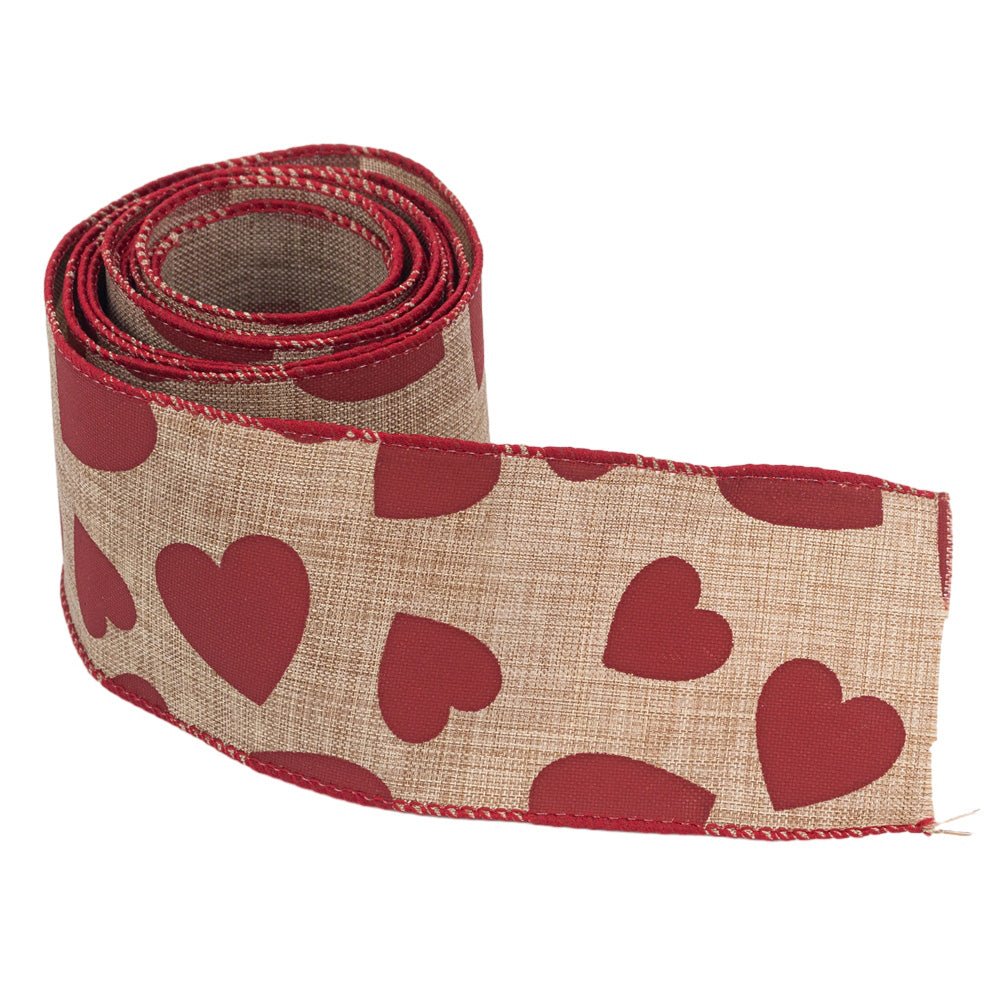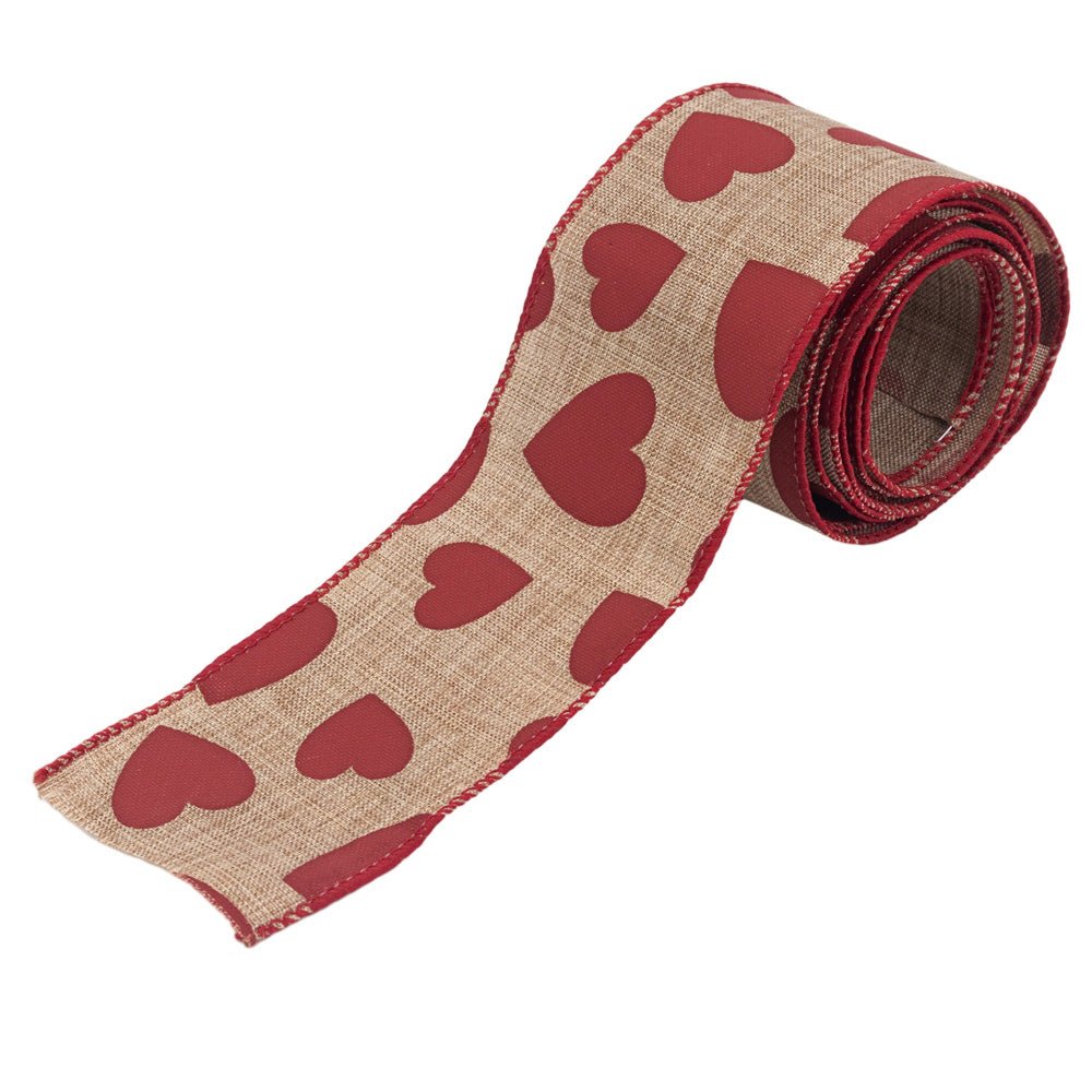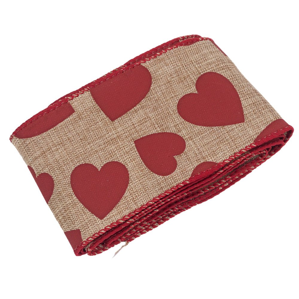 Bandă iută cu inimi - Roșu 6.3cm x 2m