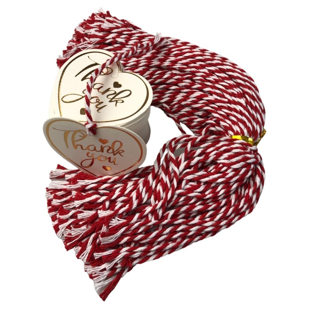 Etichete din hârtie în formă de inimă Thank you 5cm - alb sunt accesorii delicate și adorabile, perfecte pentru a adăuga un plus de frumusețe și recunoștință în diferite ocazii.