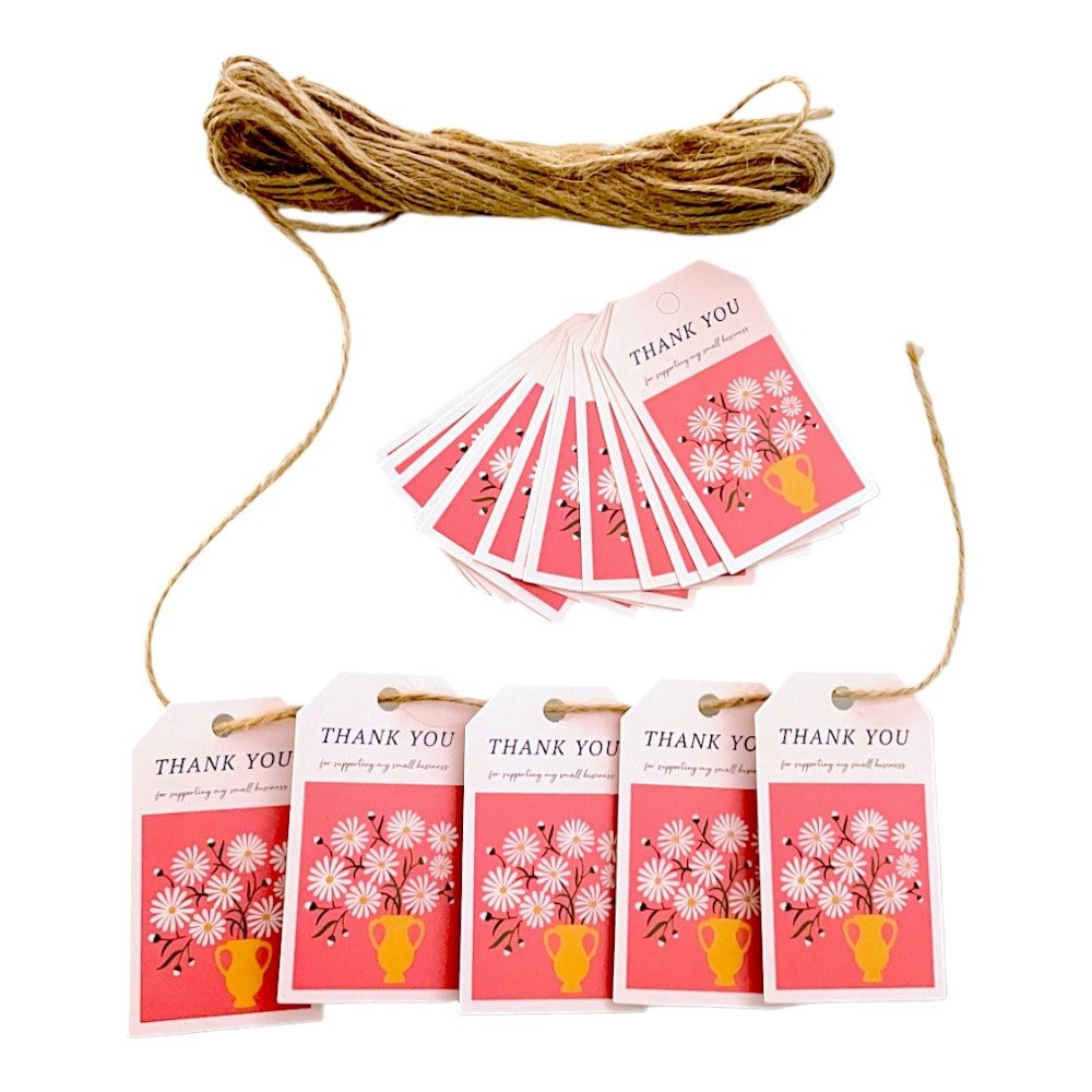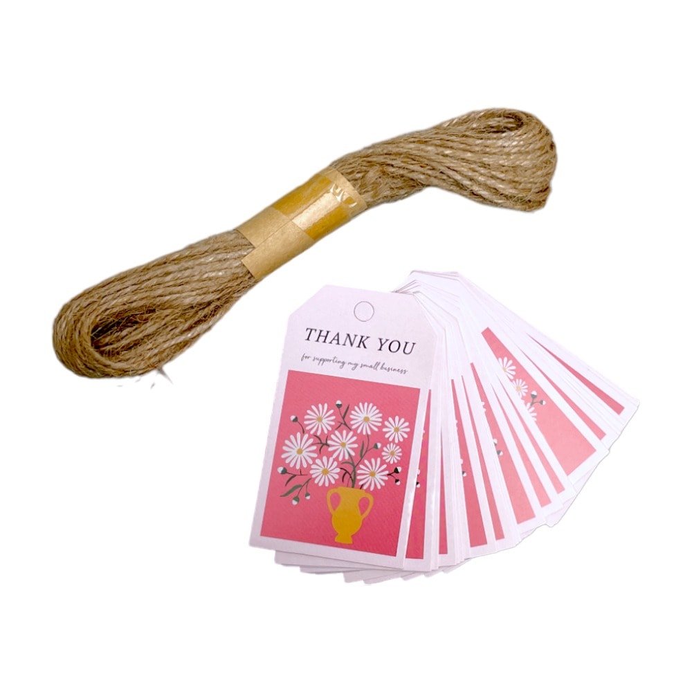 Etichete dreptunghiulare cu flori și mesaj Thank you 4x7cm - model 1 (set 50 buc) sunt accesorii elegante și versatile, perfecte pentru a ad