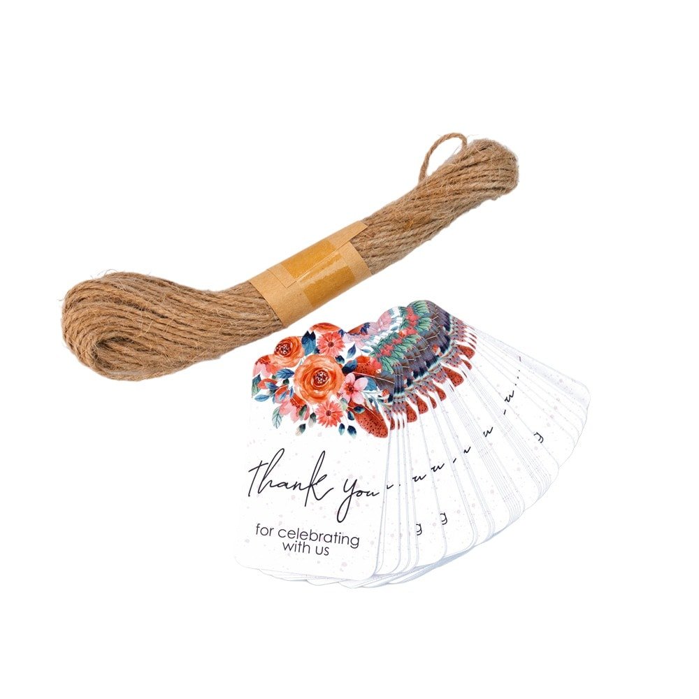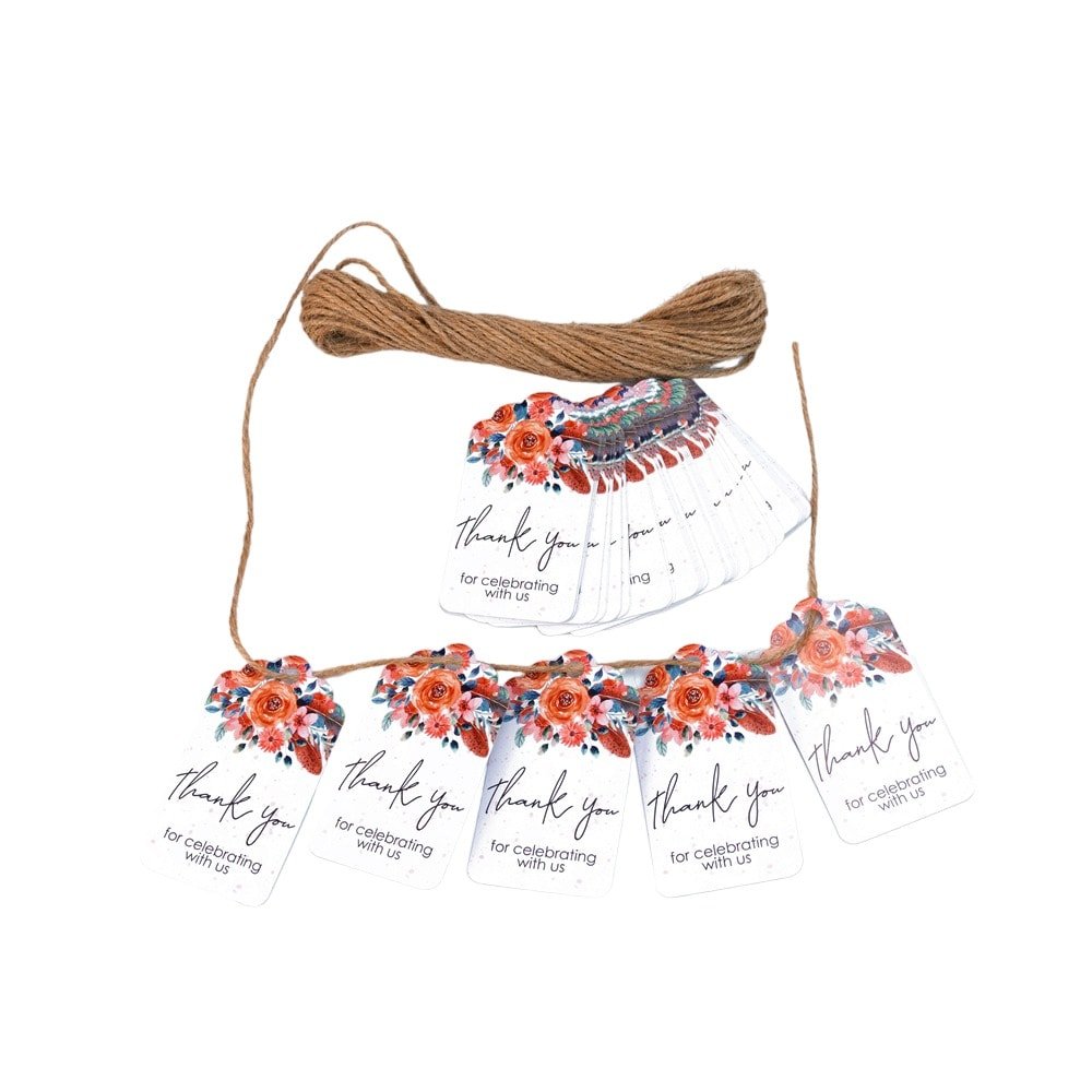 Etichete dreptunghiulare cu flori și mesaj Thank you 4x7cm - model 2 (set 50 buc) sunt accesorii elegante și versatile, perfecte pentru a adău