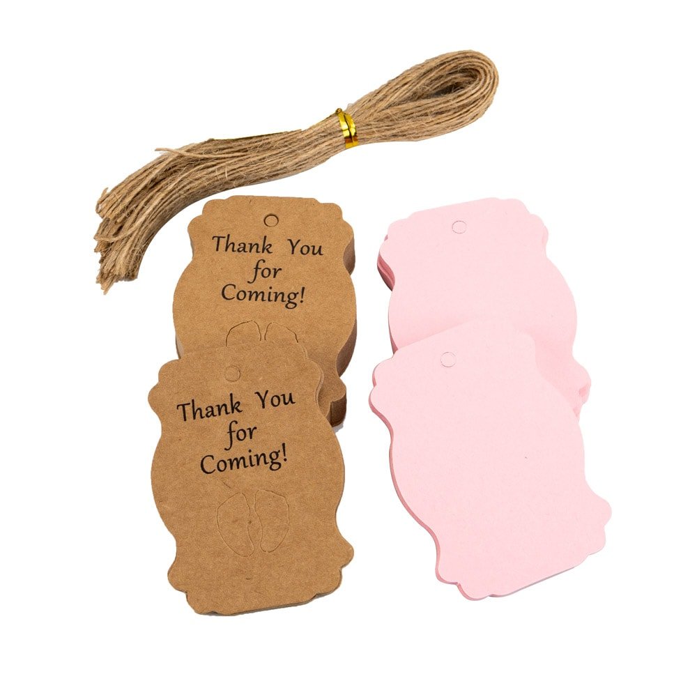 Etichete în 2 culori cu șnur model piciorușe de bebeluș - roz (set 50 buc), adaugă un element adorabil oricărui cadou sau eveniment.