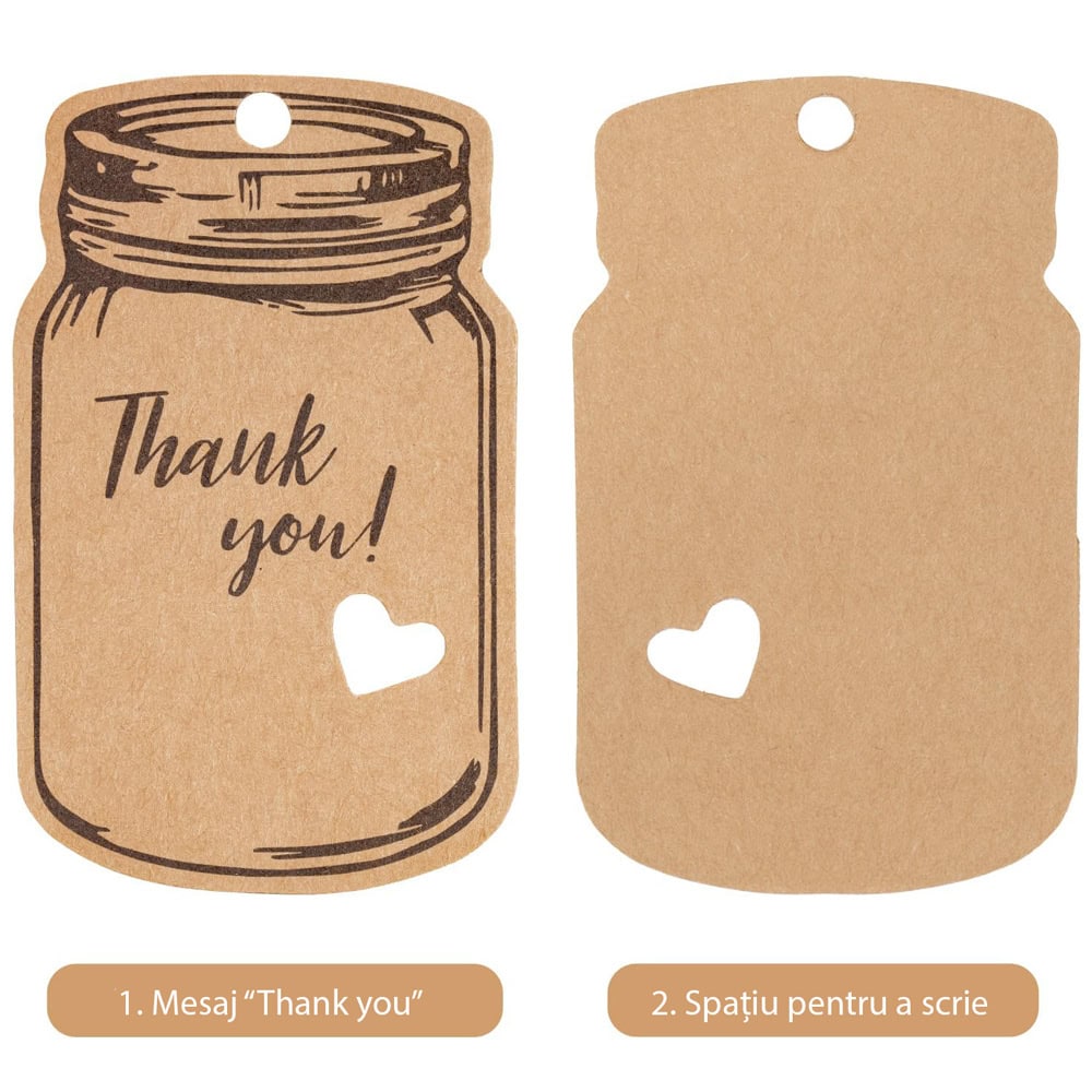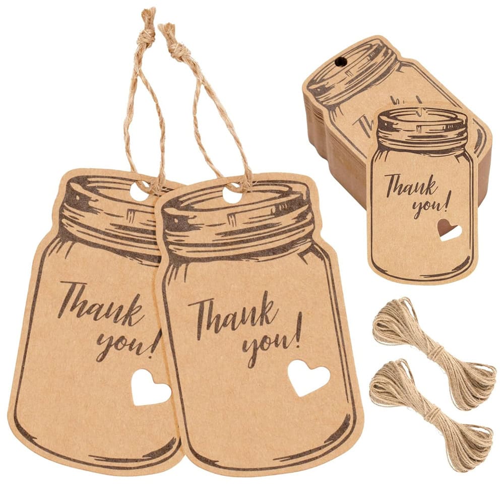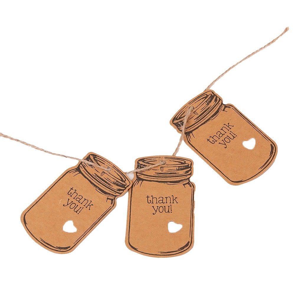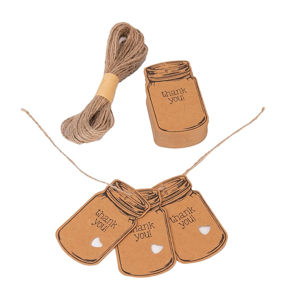 Etichete model borcan cu mesaj Thank you și sfoară iută - kraft, adaugă o notă rustică și personală cadourilor tale. Designul simplu și elegant le face perfecte pentru cadouri sau alte daruri făcute manual.