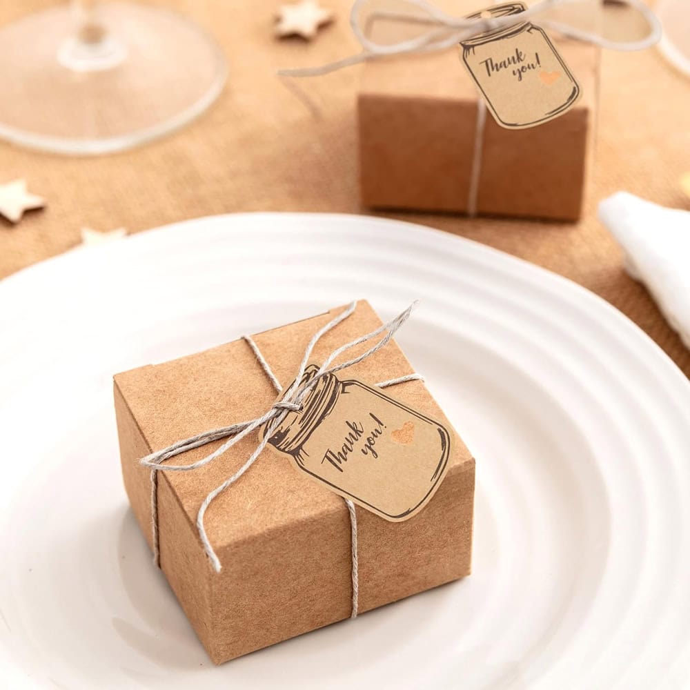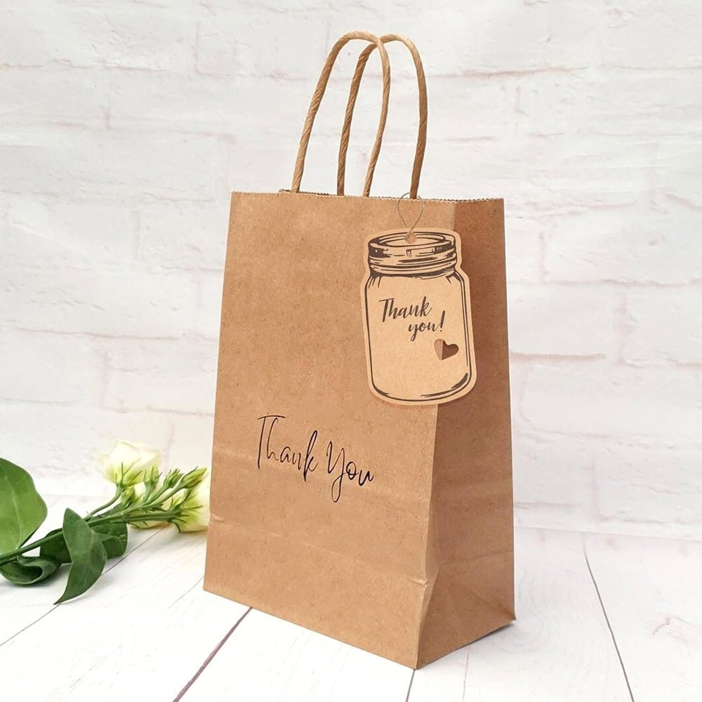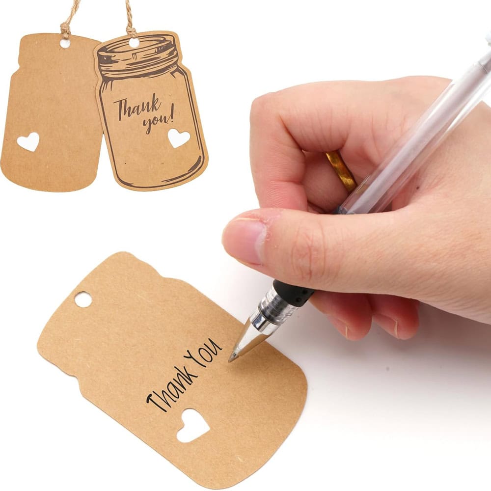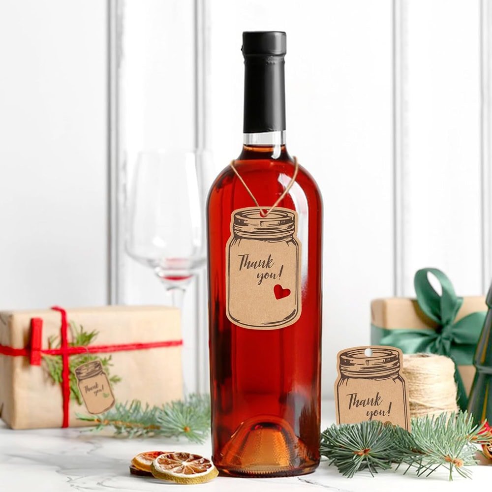 Etichete model borcan cu mesaj Thank you și sfoară iută - kraft, adaugă o notă rustică și personală cadourilor tale. Designul simplu și elegant le face perfecte pentru cadouri sau alte daruri făcute manual.