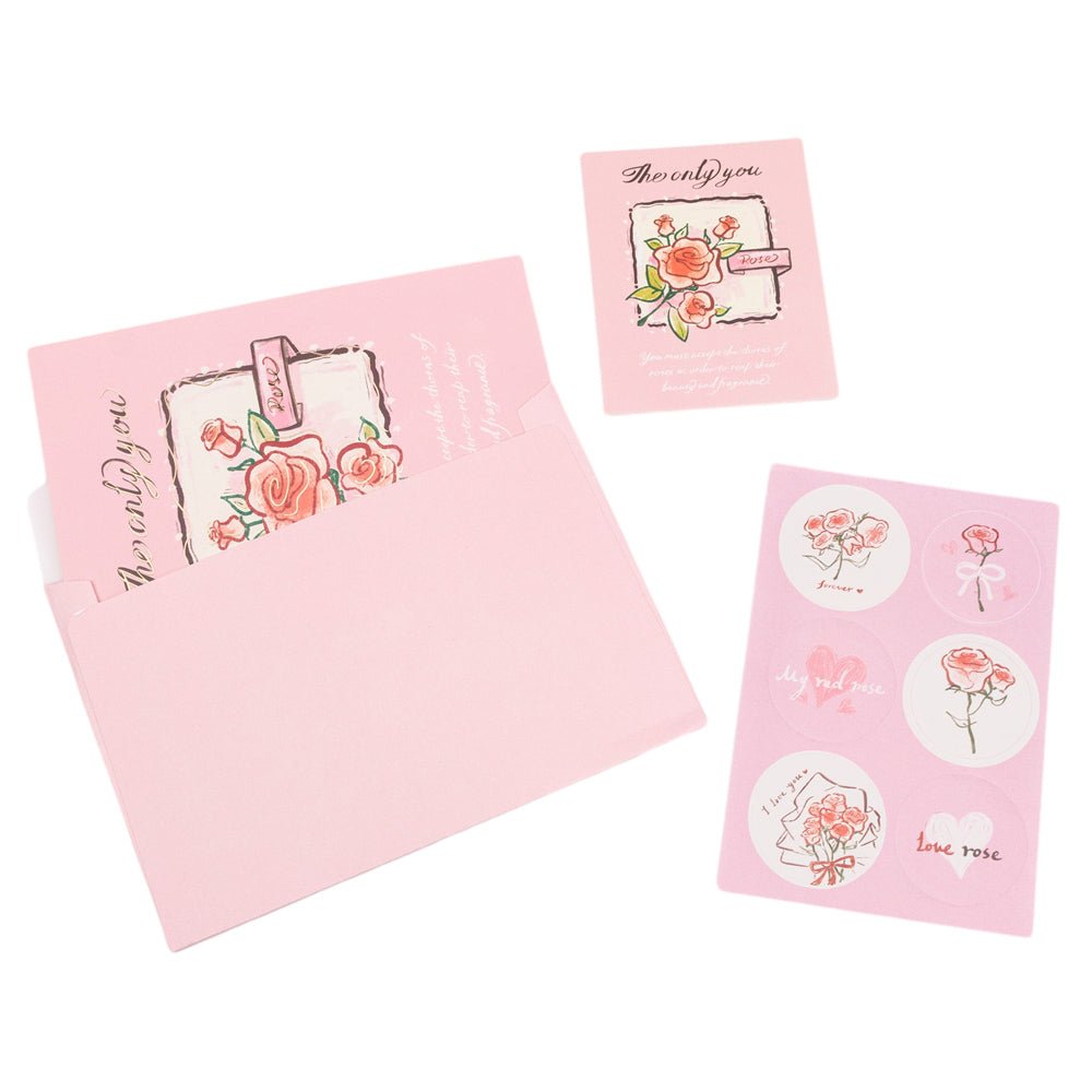 • Trandafirii roz sunt elementul central al acestei felicitări