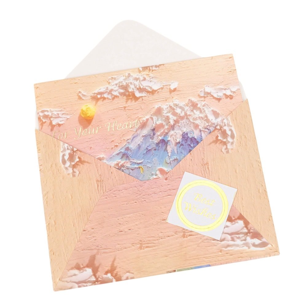 Felicitare stil pictură cu plic și sticker Best Wishes - model 1 este o felicitare unică, inspirată de arta picturii, adaugă o notă de eleganță și originalitate oricărui mesaj. Cu designul său artistic și textul emoționant, felicitarea este perfectă pentru a exprima sentimente sincere și a marca momente speciale.