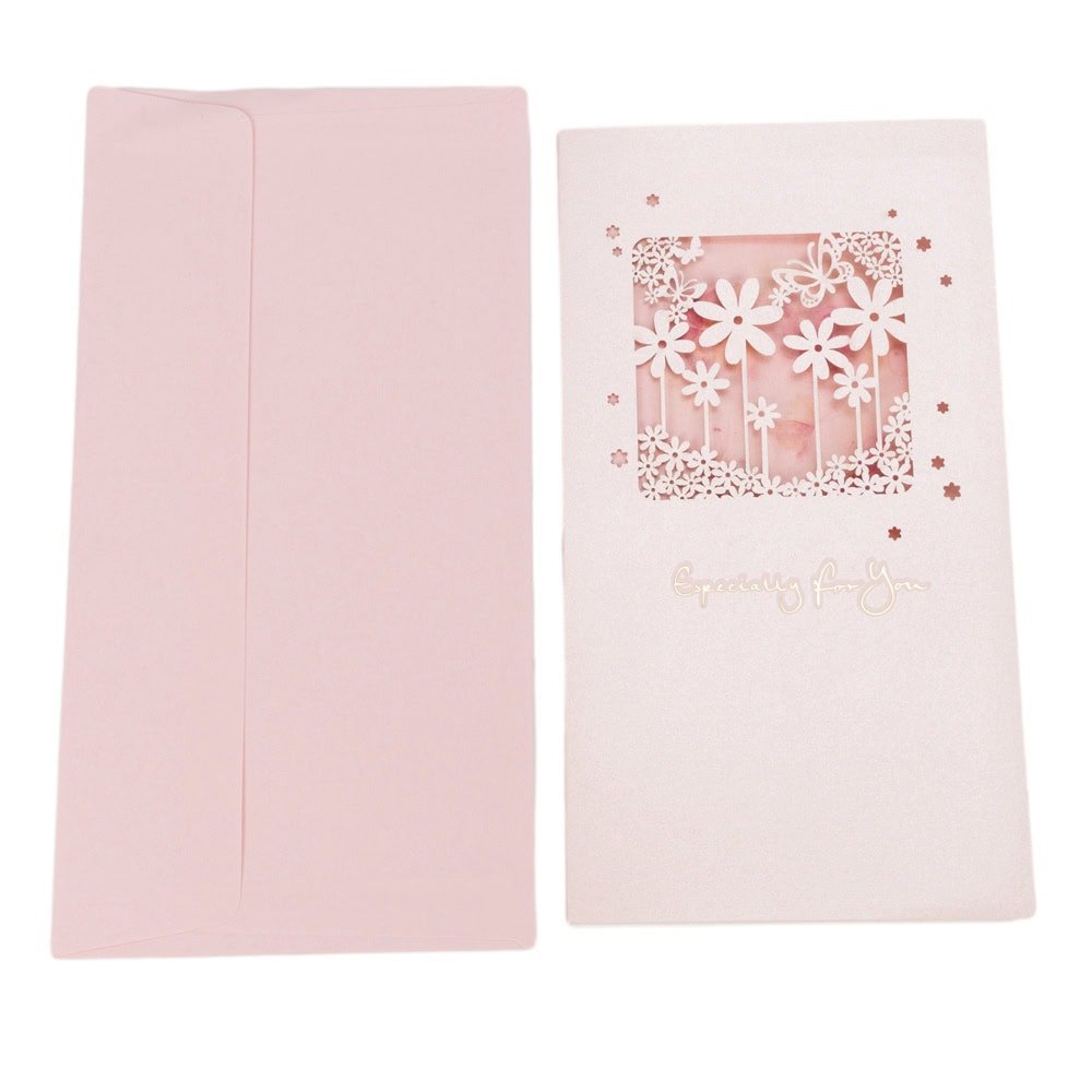 • Plic roz: Plicul roz, cu un design uni, completează perfect aspectul felicitării