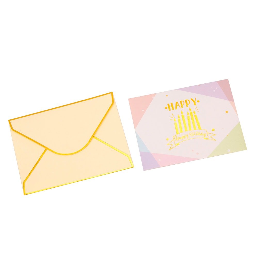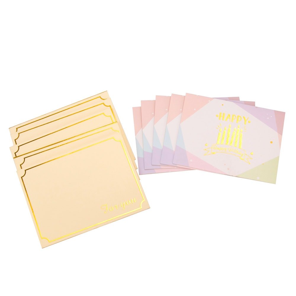 Felicitări hârtie cu mesaj auriu Happy Birthday - model lumânări (set 6 buc), oferă o notă specială urării tale de "La mulți ani!". Designul elegant și festiv o face perfectă pentru a celebra ziua de naștere a unei persoane dragi și a crea o amintire memorabilă.