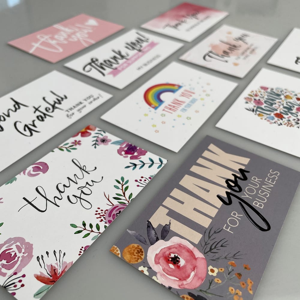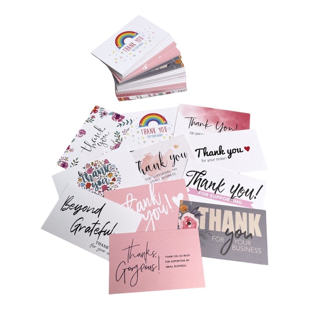 Felicitări Thank you 12 modele diferite - alb (set 100 buc), exprimă-ți recunoștința cu un set de 10 felicitări diferite, oferindu-ți sufic