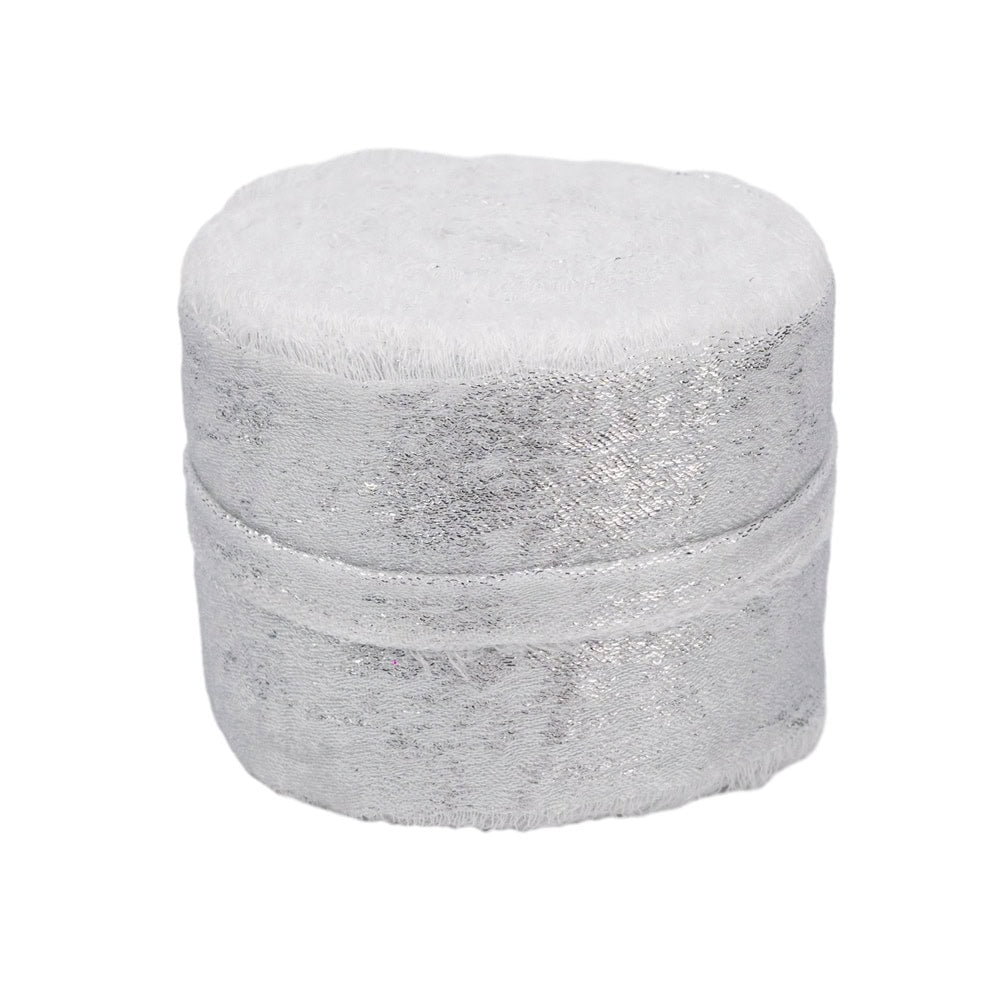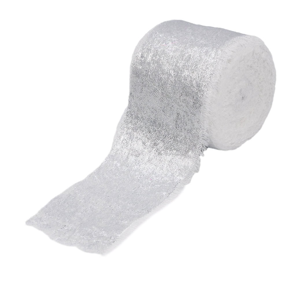 Panglică textil strălucitoare cu margini nefinisate - alb - 4cm x 5m