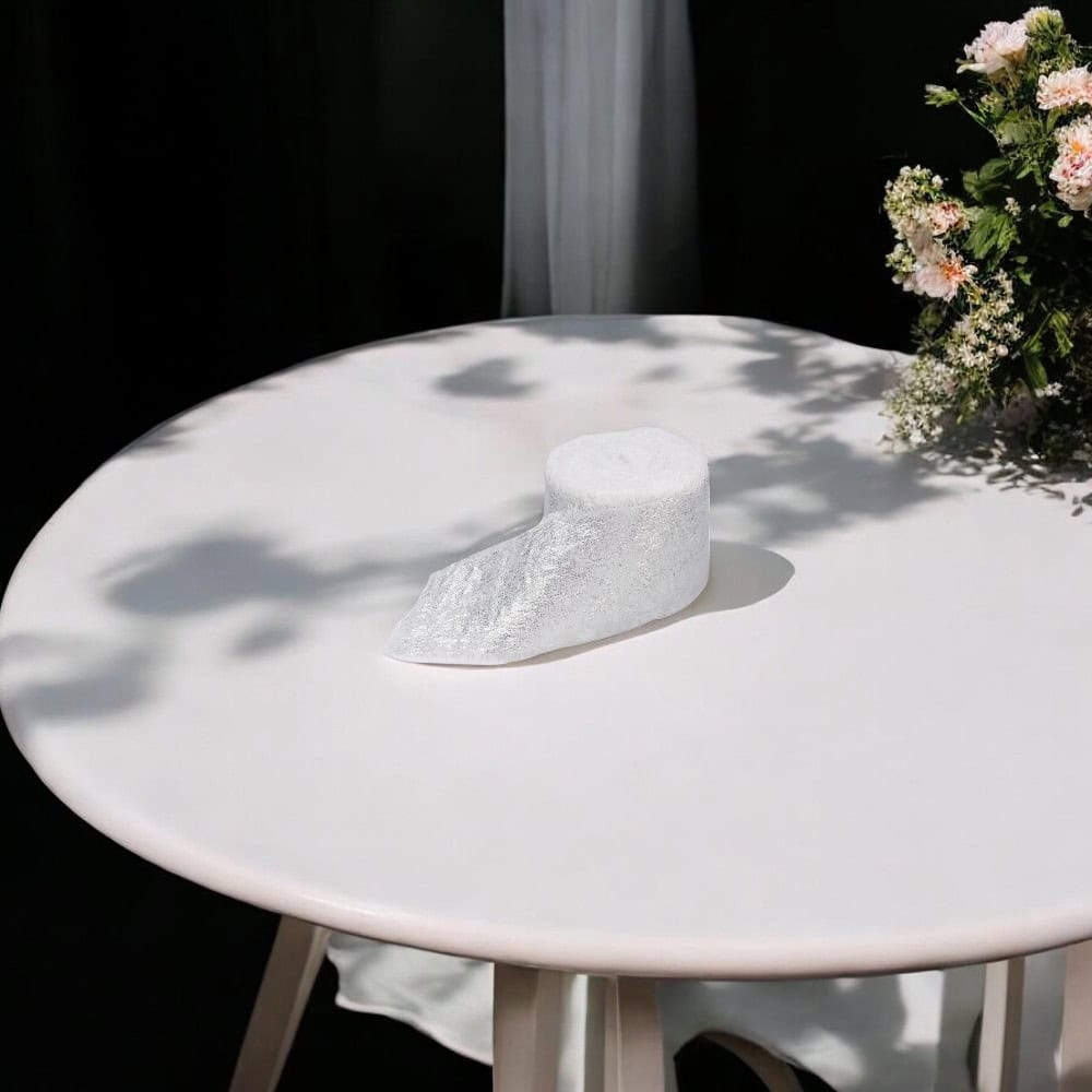 Panglică textil strălucitoare cu margini nefinisate - alb aduce un strop de eleganță și strălucire oricărui proiect. Textura sa delicată și marginile nefinisate îi conferă un aspect romantic și boem, perfect pentru a adăuga un plus de farmec decorațiunilor tale.