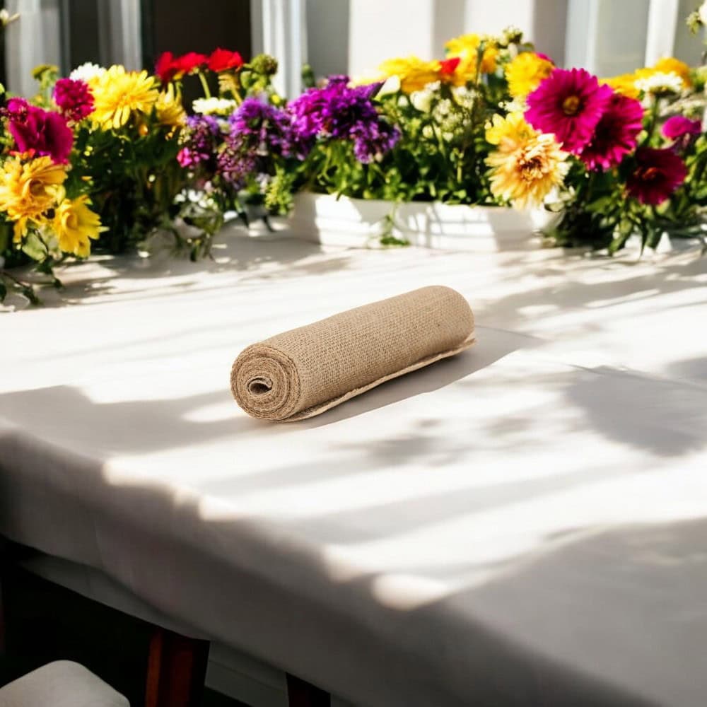 Rola iută 20cm x 2m - maro este dintr-un material textil natural, obținut din fibrele plantei de iută. Textura sa rustică și culoarea caldă îi conferă un aspect autentic și versatil, fiind ideală pentru o varietate de proiecte de decor și ambalare.✨