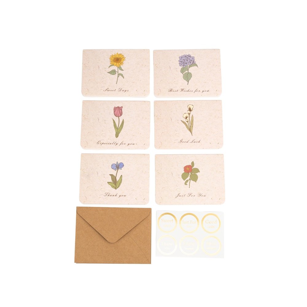 Set 6 felicitări diferite model floral cu text și sticker - bej