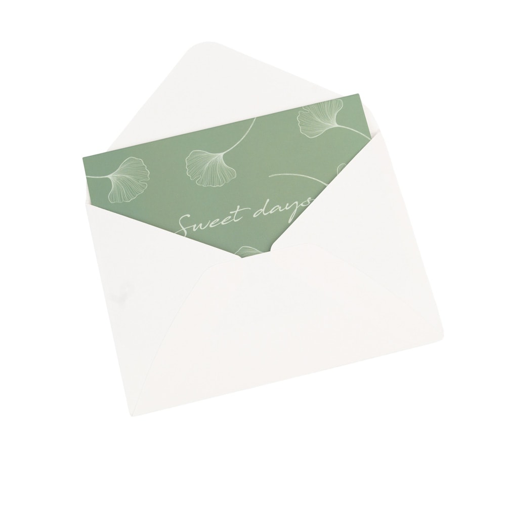 Set 6 felicitări diferite model floral cu text și sticker - verde