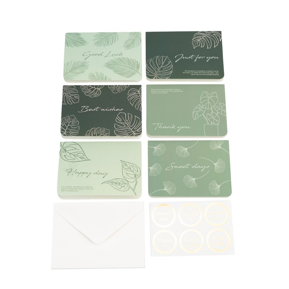 Set 6 felicitări diferite model floral cu text și sticker - verde, oferă o modalitate frumoasă de a transmite urări și sentimente speciale.