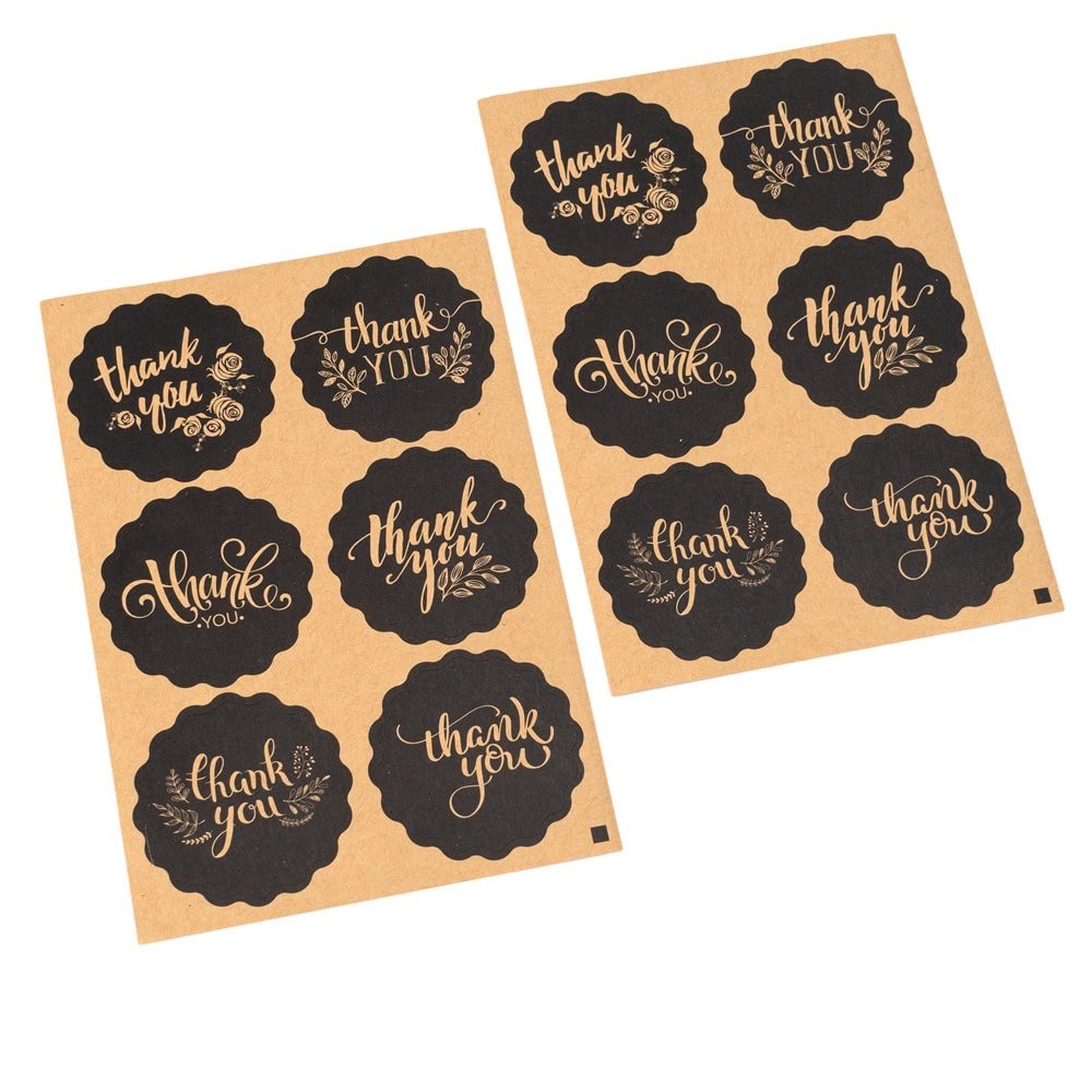 • Stickere rotunde cu mesaj auriu "Thank you"