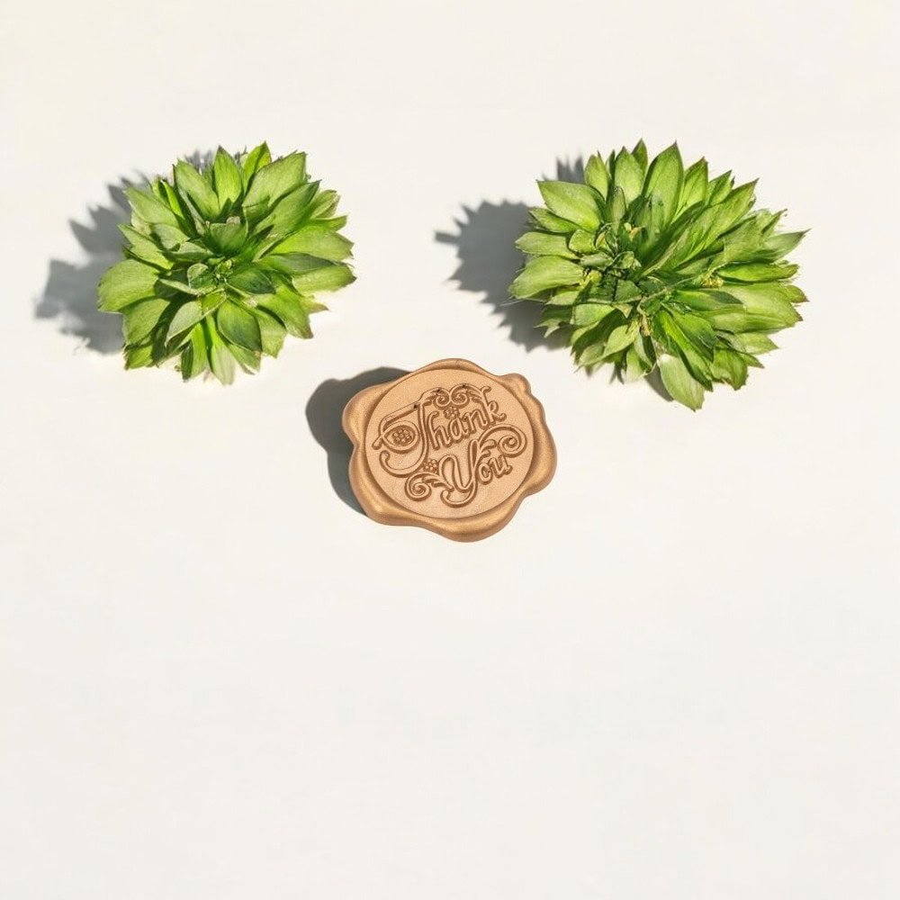 • Design sofisticat: Modelul "Thank You" cu un font elegant și detalii ornamentale conferă sigiliului un aspect deosebit