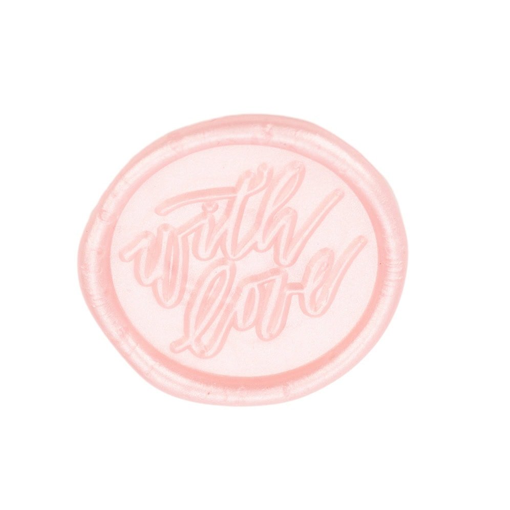 Sigiliu ceară 3cm cu adeziv - model With Love roz (set 50 buc)