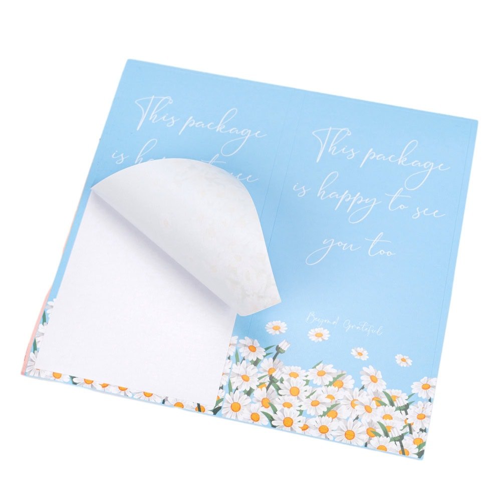 Stickere dreptunghiulare cu mesaj This package is happy to see you too - bleu (set 50 buc), oferă o modalitate grațioasă de a personaliza pachetele și de a transmite un mesaj cald clienților. Cu un design floral delicat pe fundal bleu și un text caligrafic atent ales, aceste etichete adaugă o notă de rafinament și apreciere fiecărui colet exp