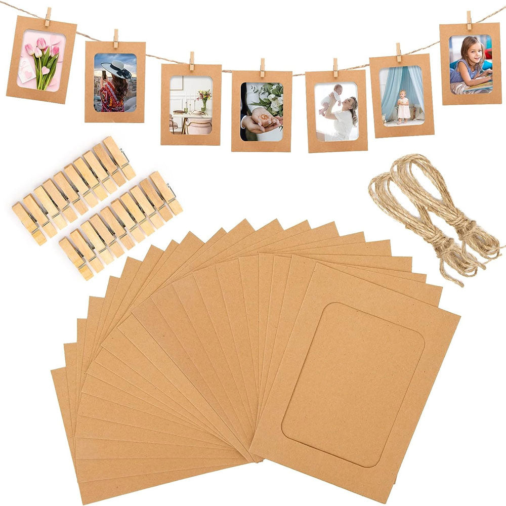 • Setul contine: 10 rame de carton, 10 carlige din lemn si o sfoara din iuta