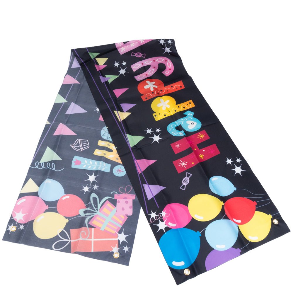 Banner aniversar cu imprimeu Happy Birthday colorat și baloane