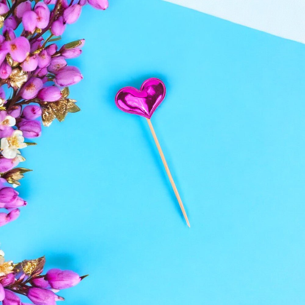 Decorațiune tort inimă - Roz (set 50 buc) 3x7cm