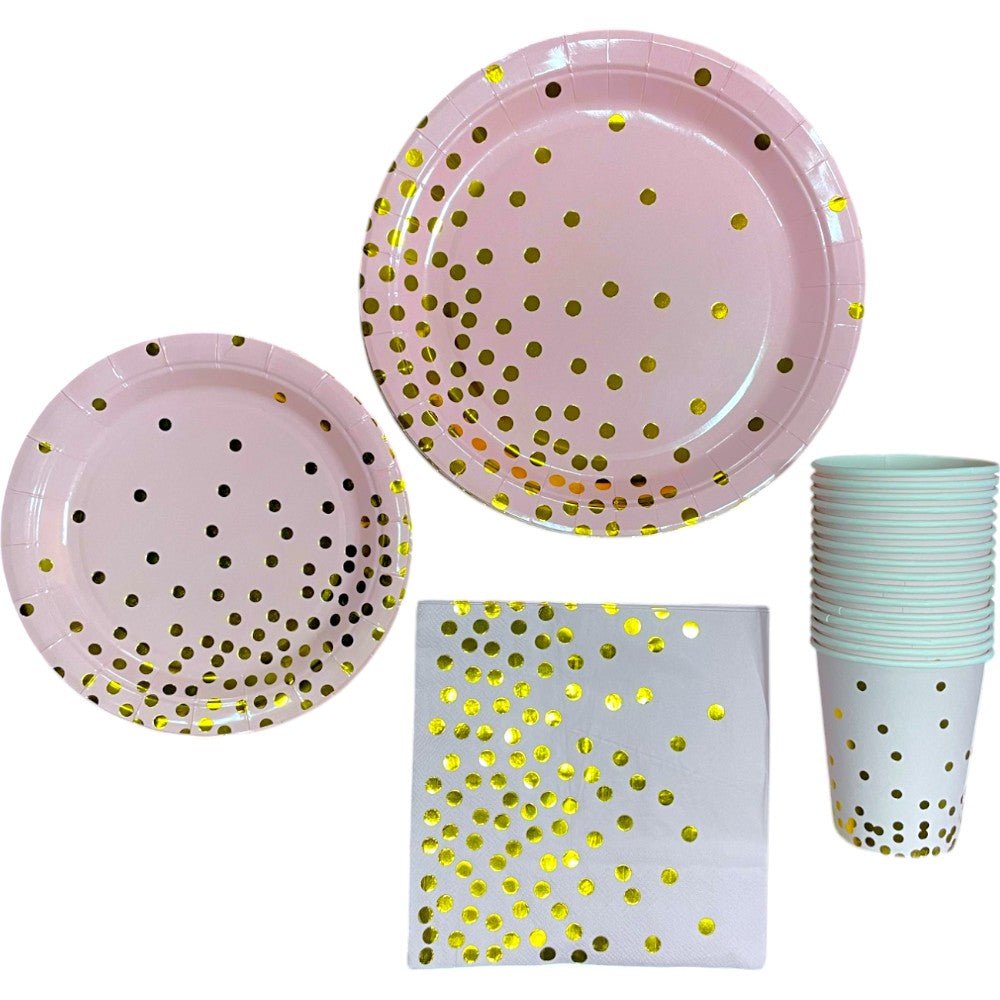 Set articole petrecere - farfurii hârtie pahare și șervețele - Roz
