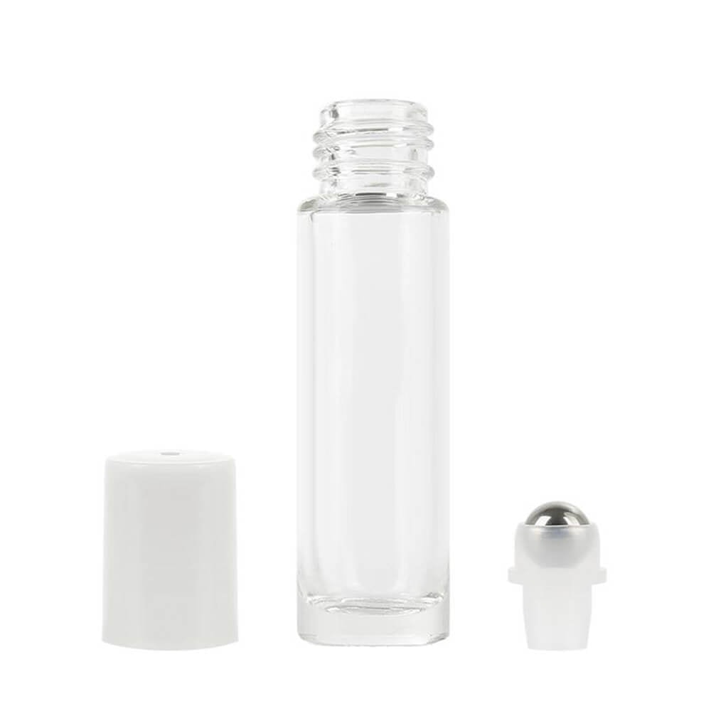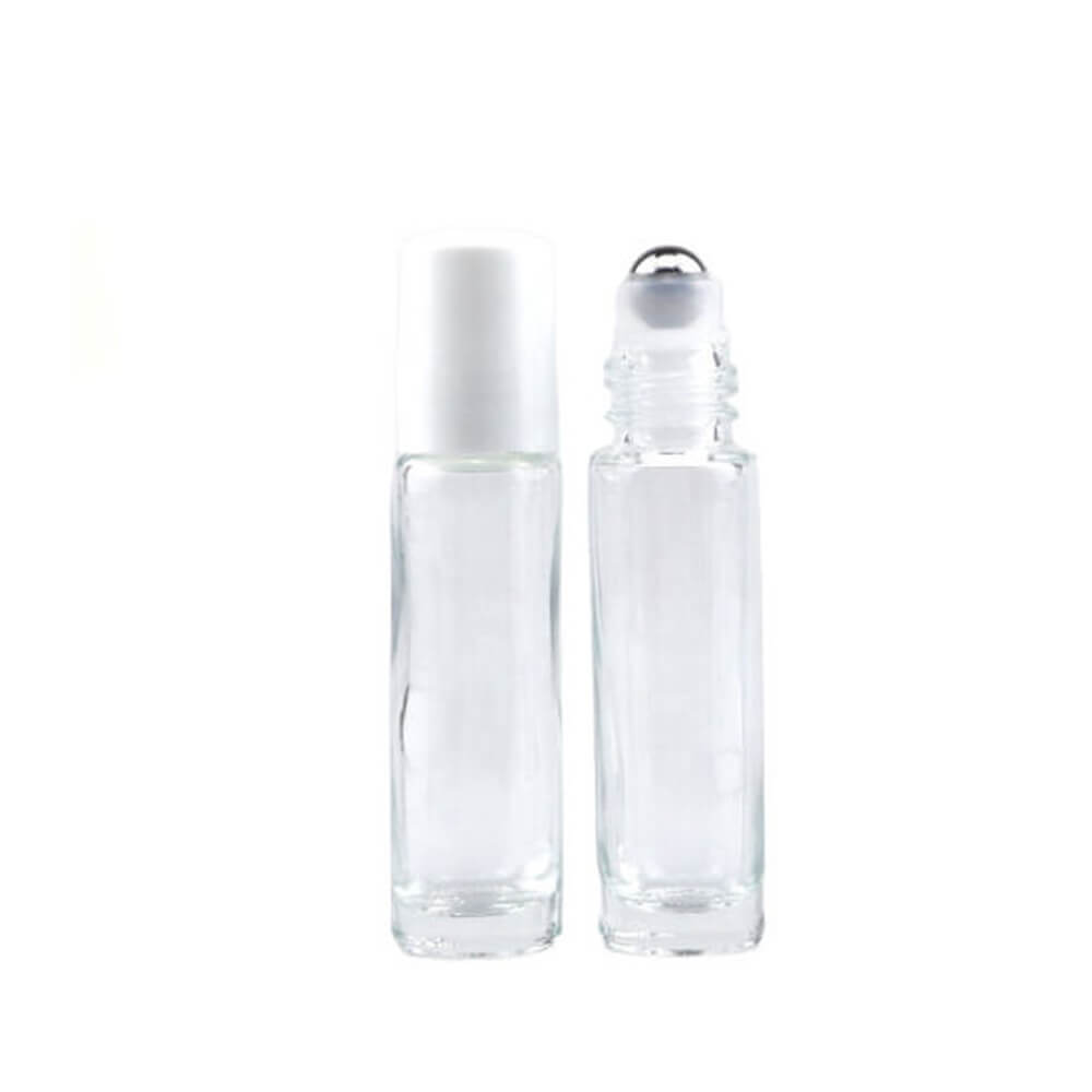 Sticluță transparentă reutilizabilă cu roll on metalic și capac alb