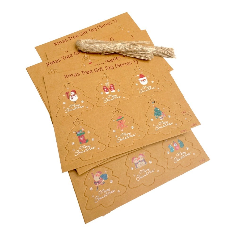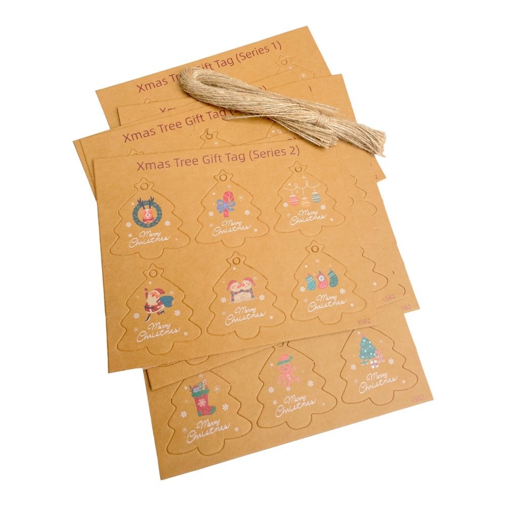 Etichete brad de Crăciun cu sfoară iută - model 7 adaugă un farmec rustic și festiv decorului tău de Crăciun.