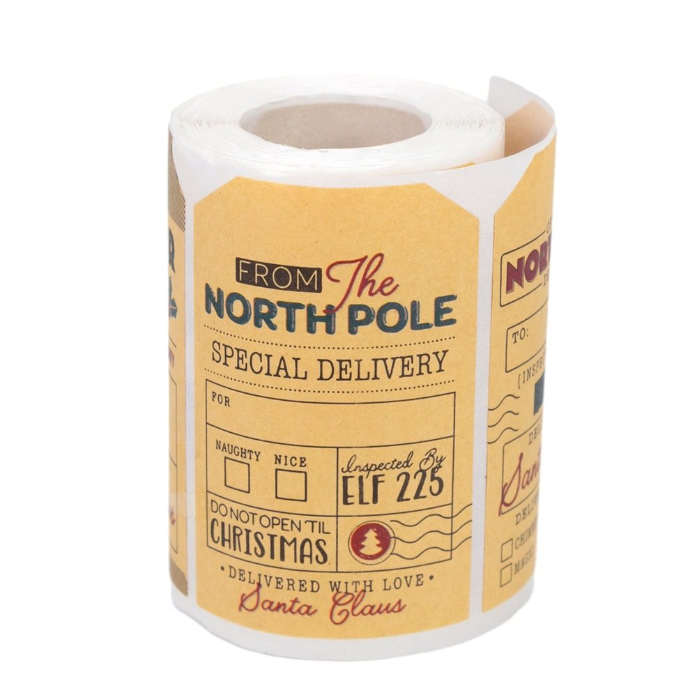 Rolă 200 stickere de Crăciun 5x7cm - model livrare cadouri 9, perfectă pentru a adăuga o notă magică și personală cadourilor de Crăciun. Cu un design inspirat de livrările poștale de la Polul Nord, aceste etichete creează o atmosferă festivă și aduc un zâmbet pe fața celor care le primesc.