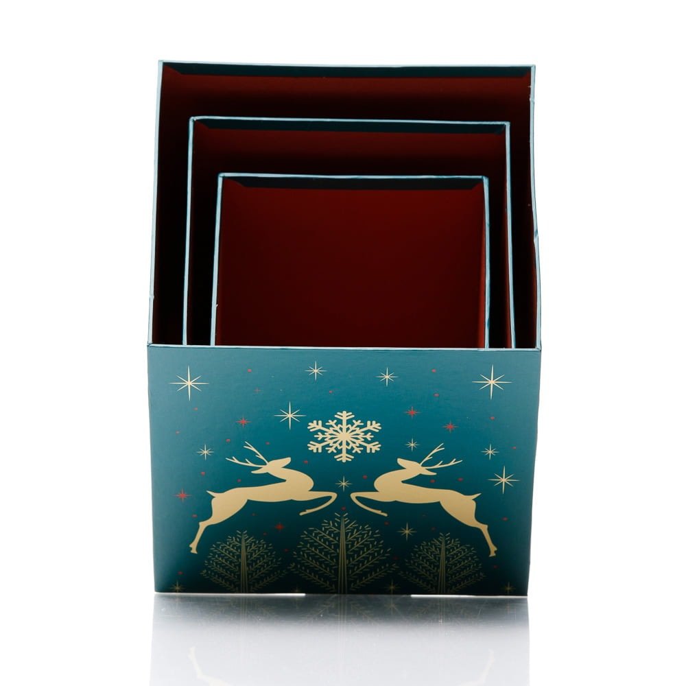 Set 3 cutii pătrate de Crăciun – model renii zăpezii