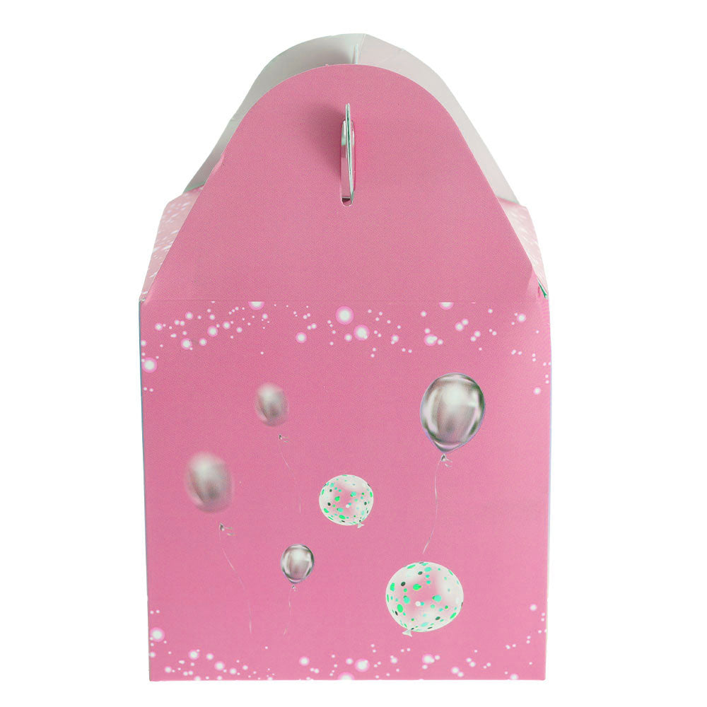 Cutie de carton cu maner pentru cani cu model Happy Birthday roz