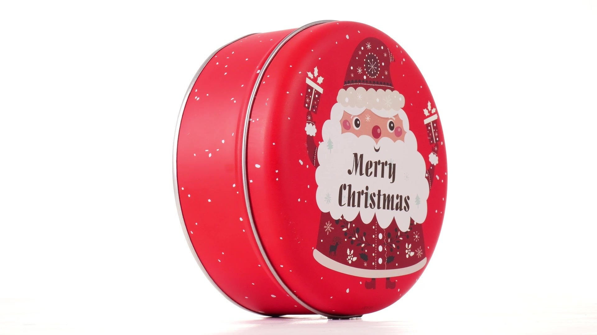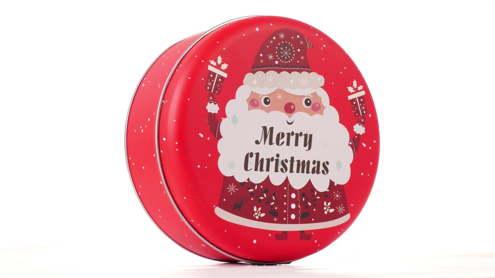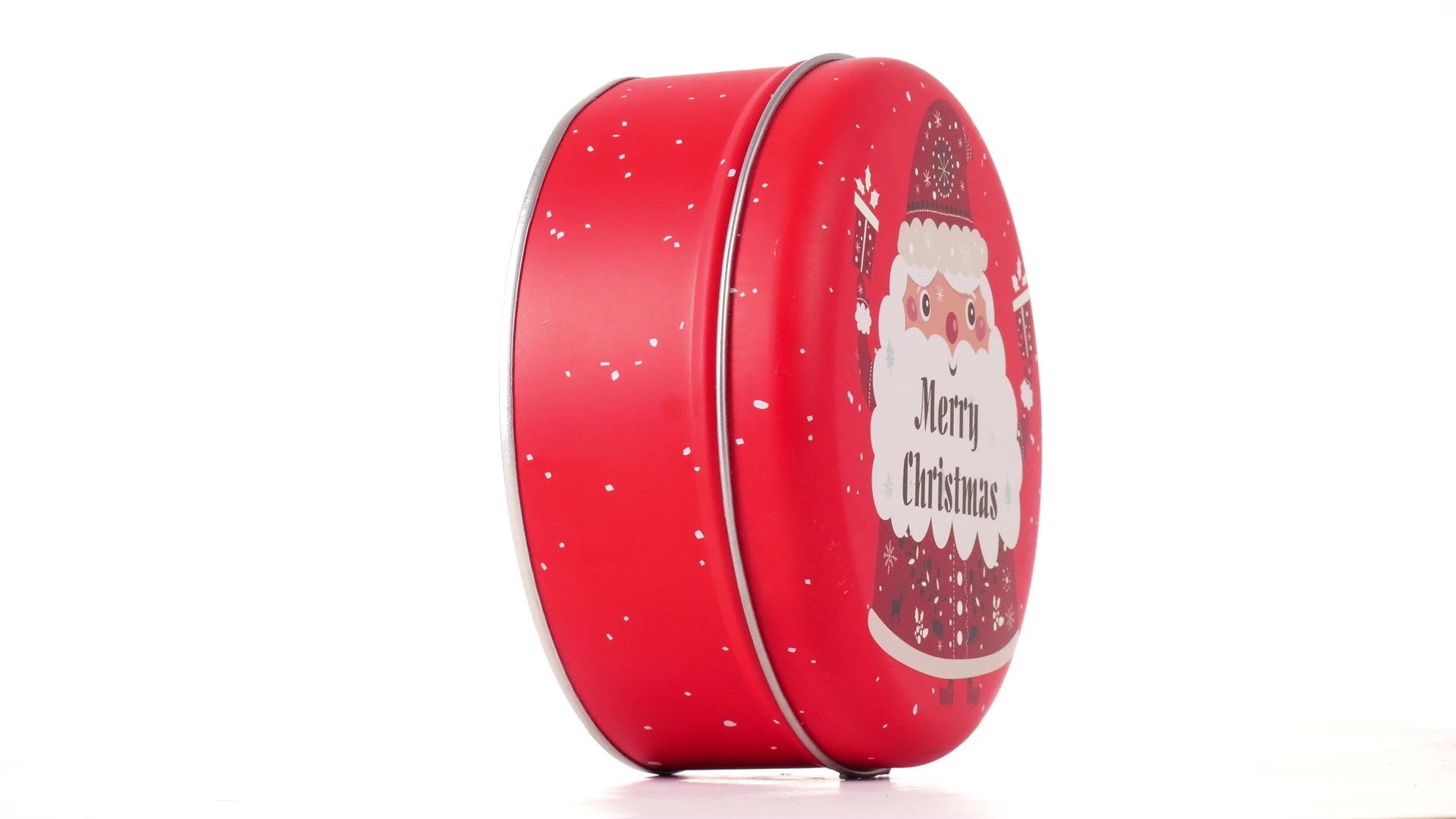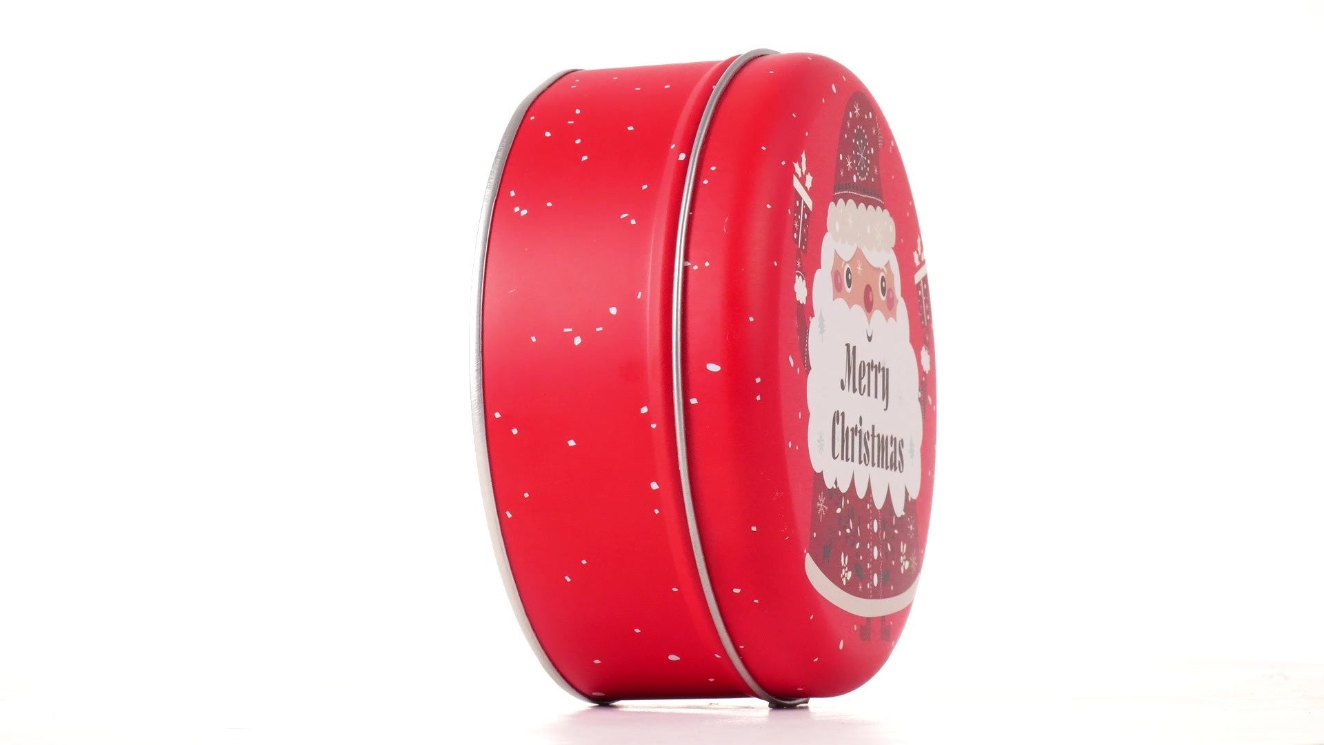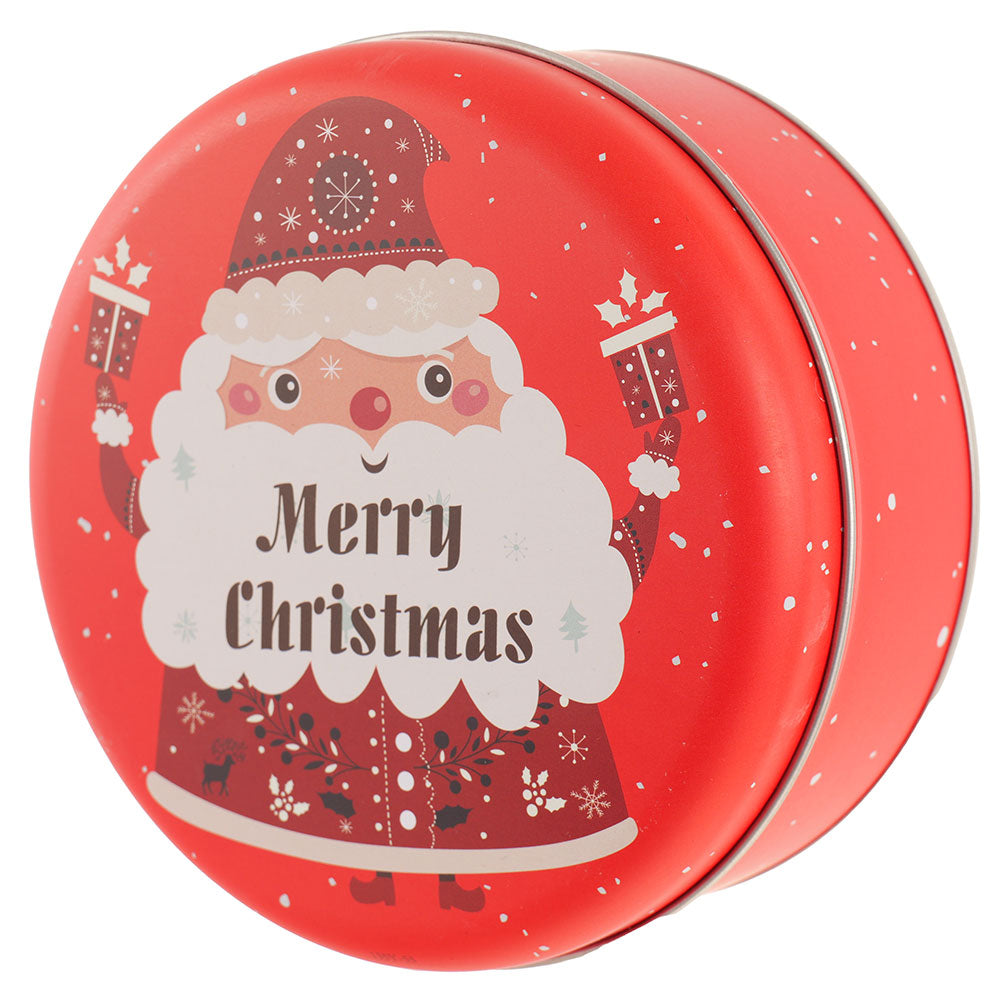 Cutie metalica rotunda rosie cu model Mos Craciun
