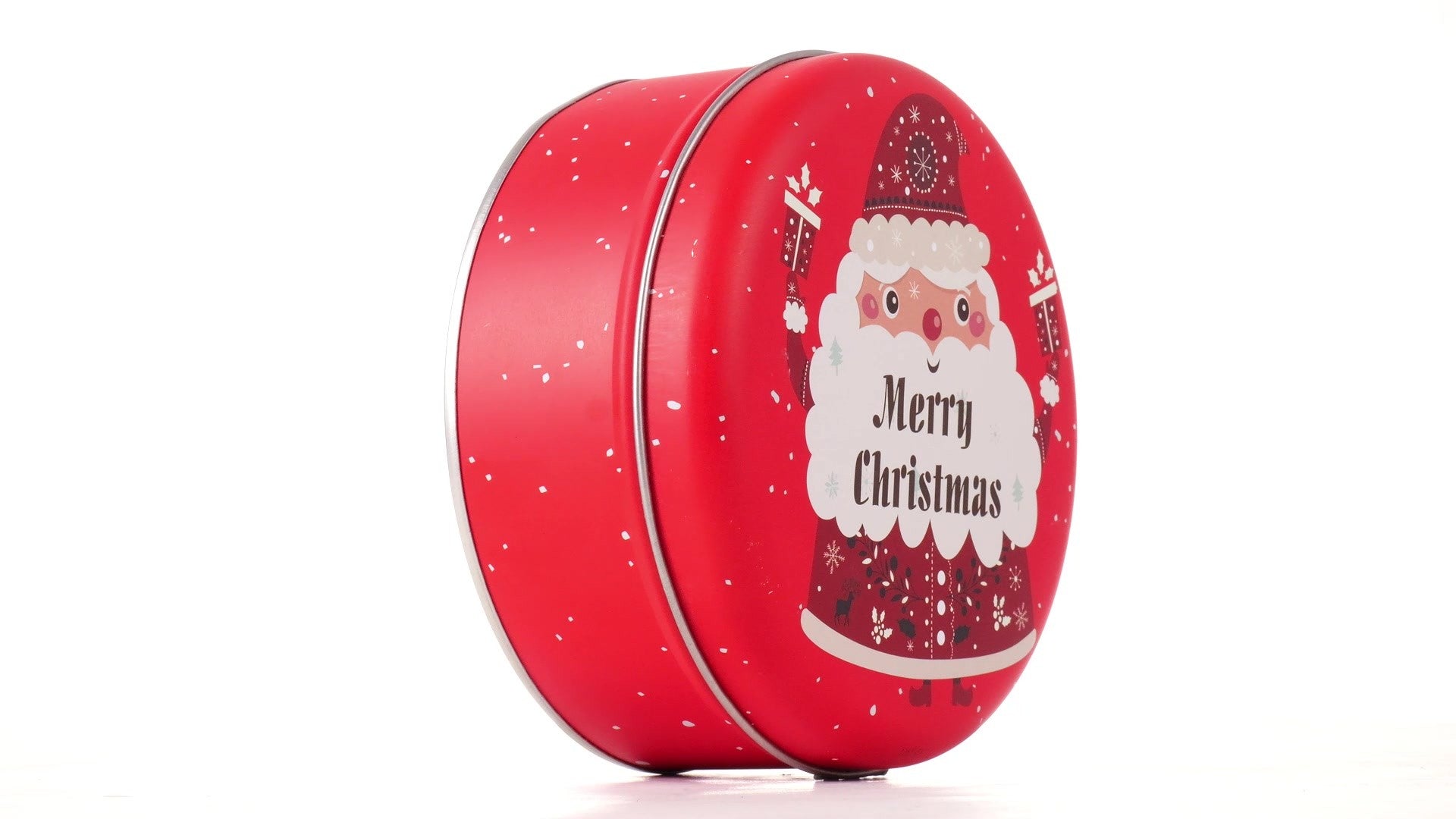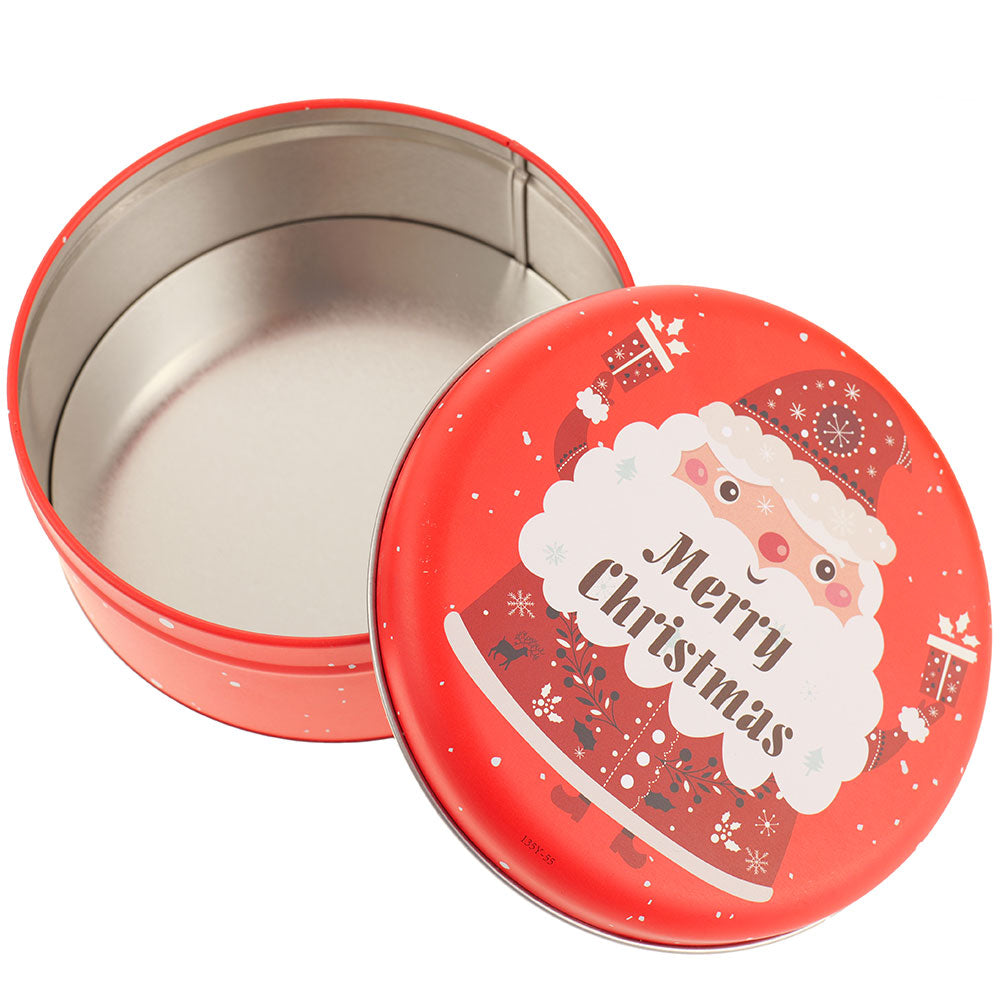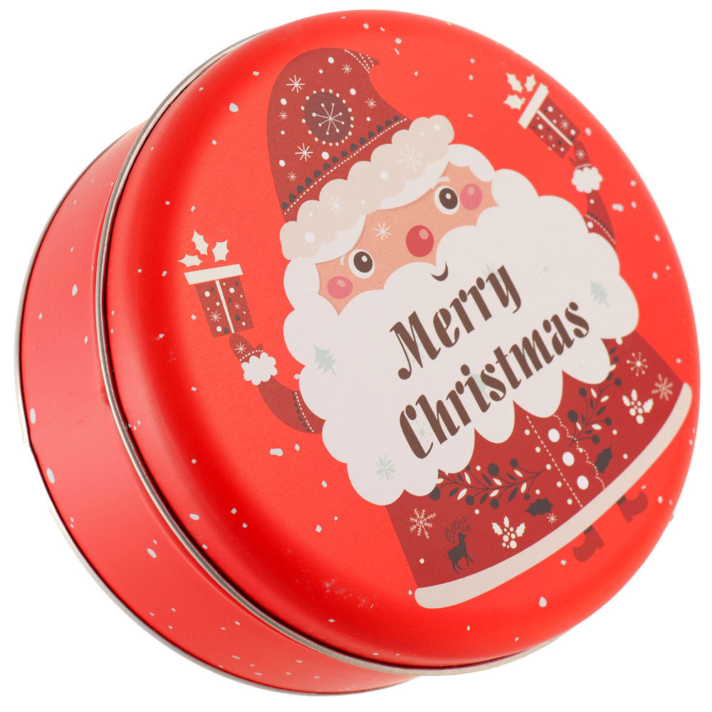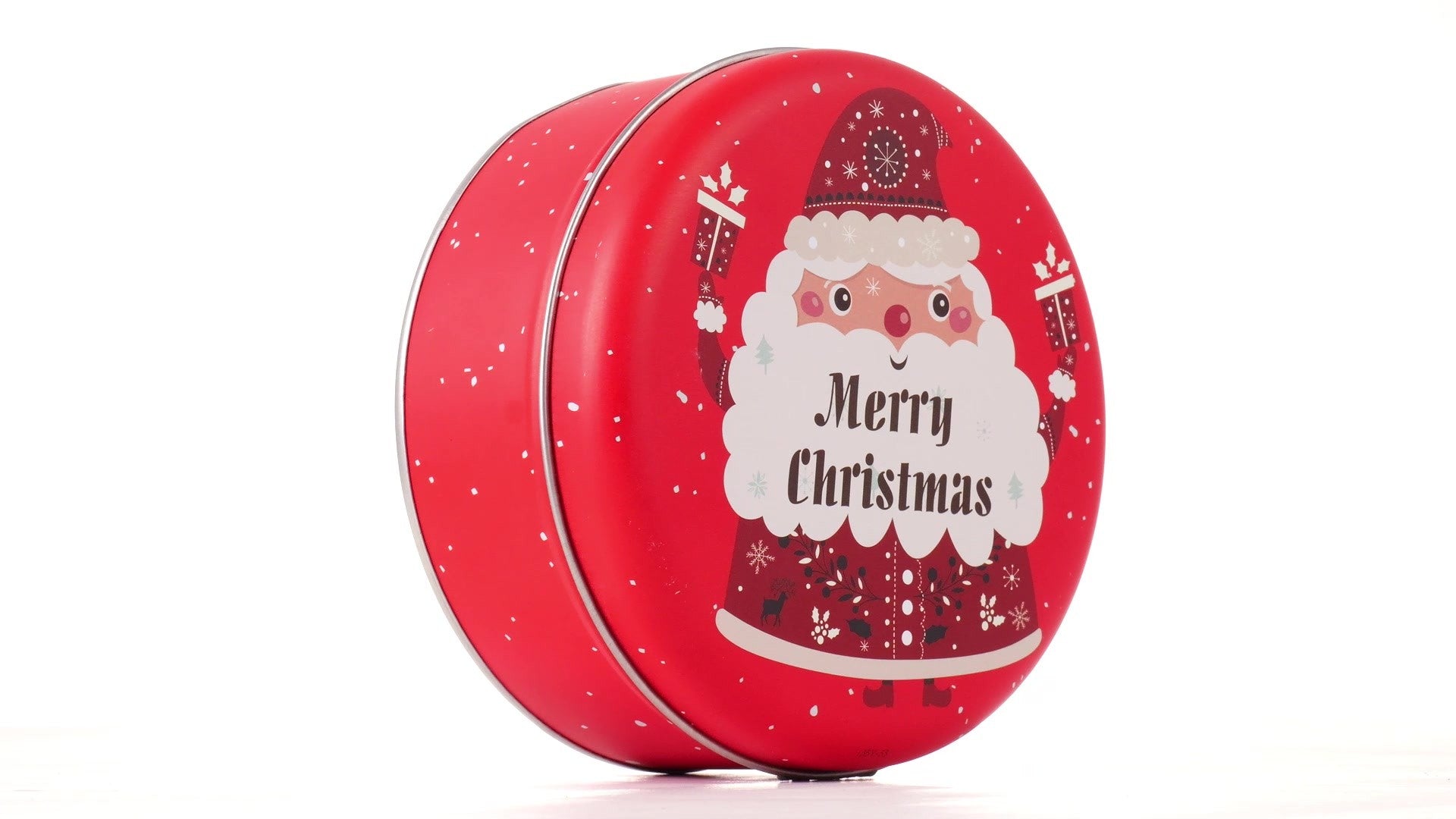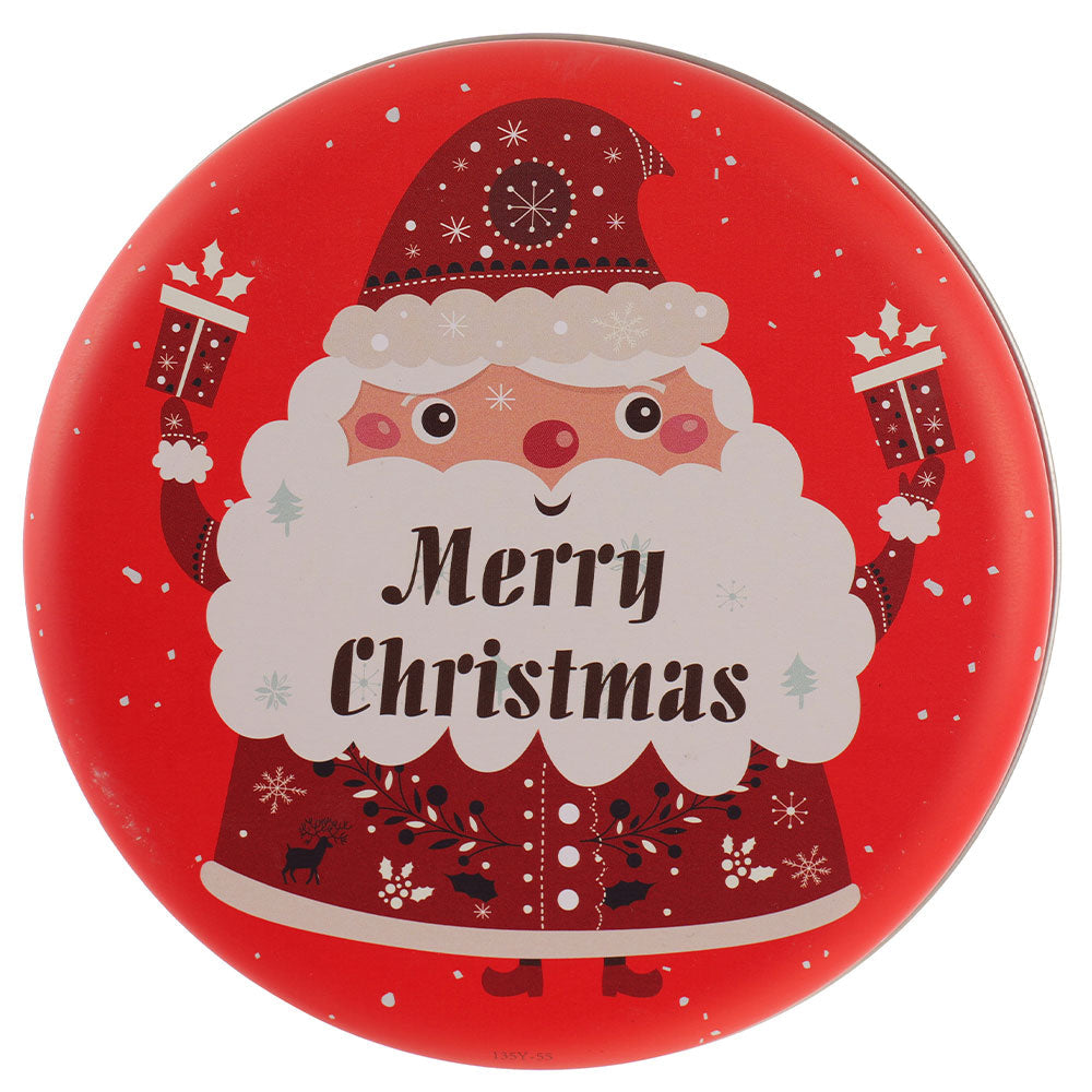 Cutie metalica rotunda rosie cu model Mos Craciun