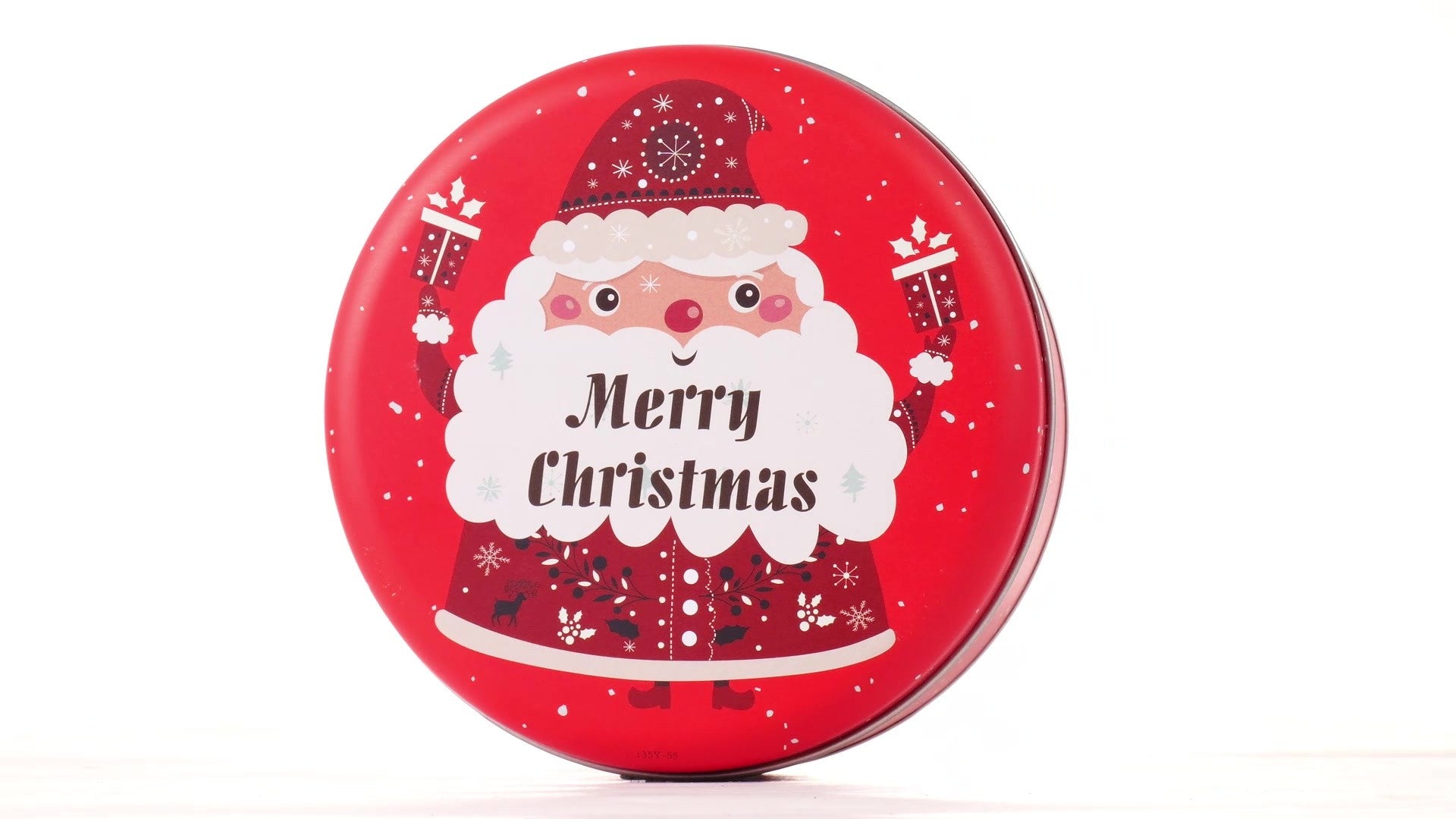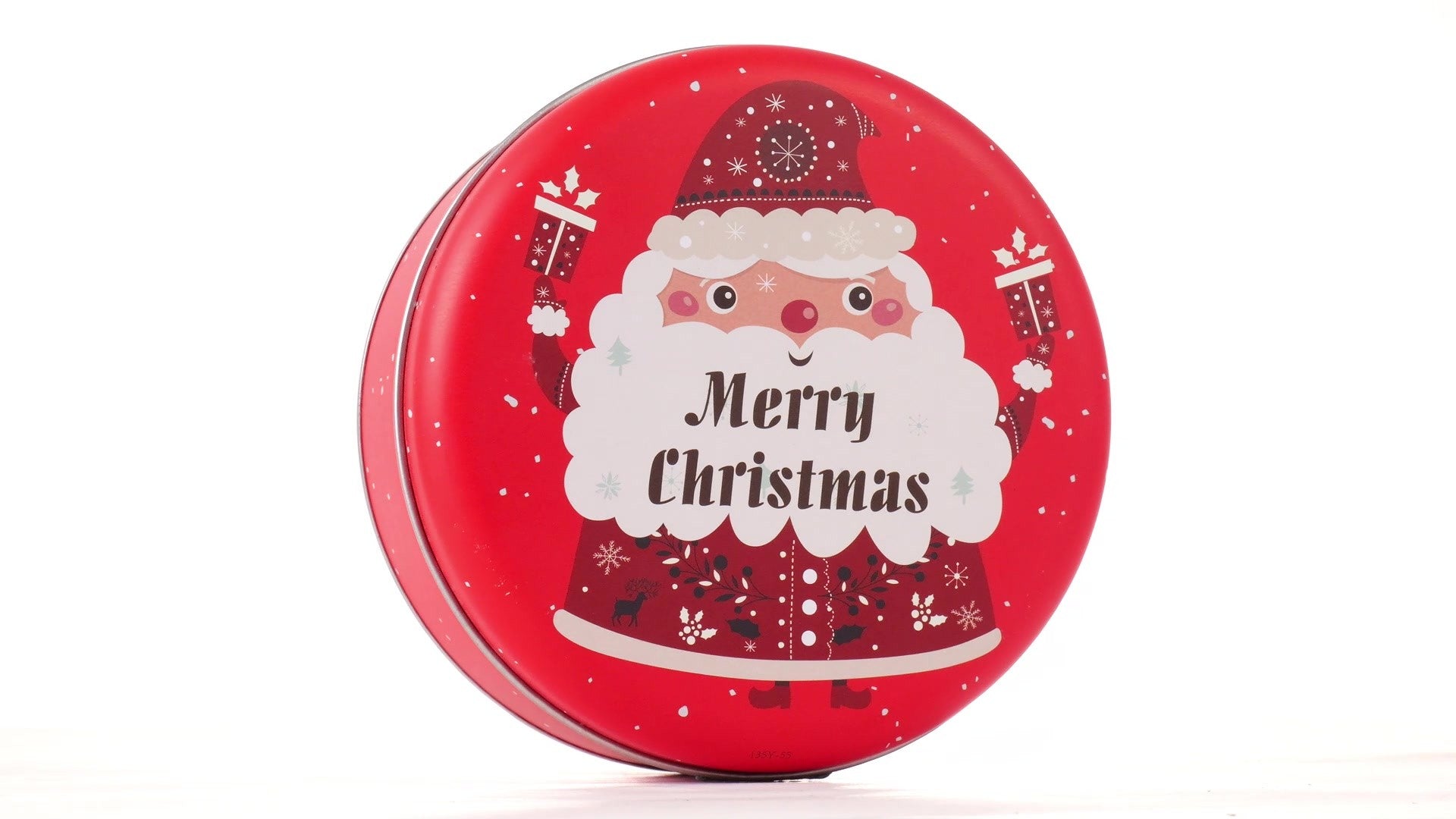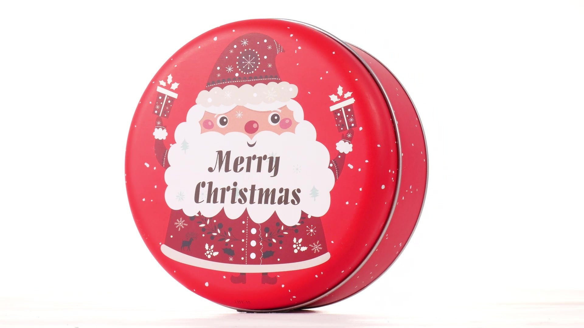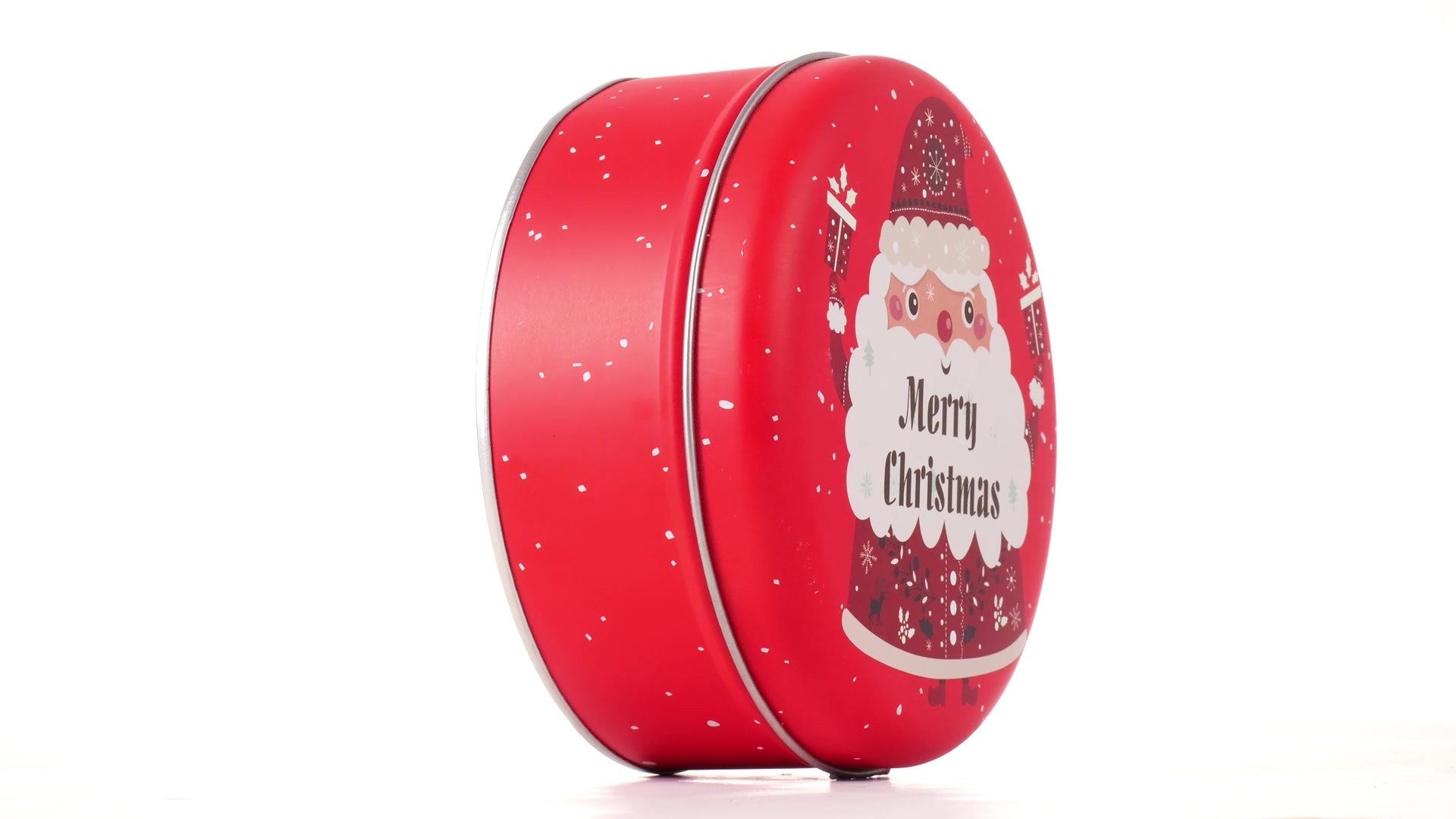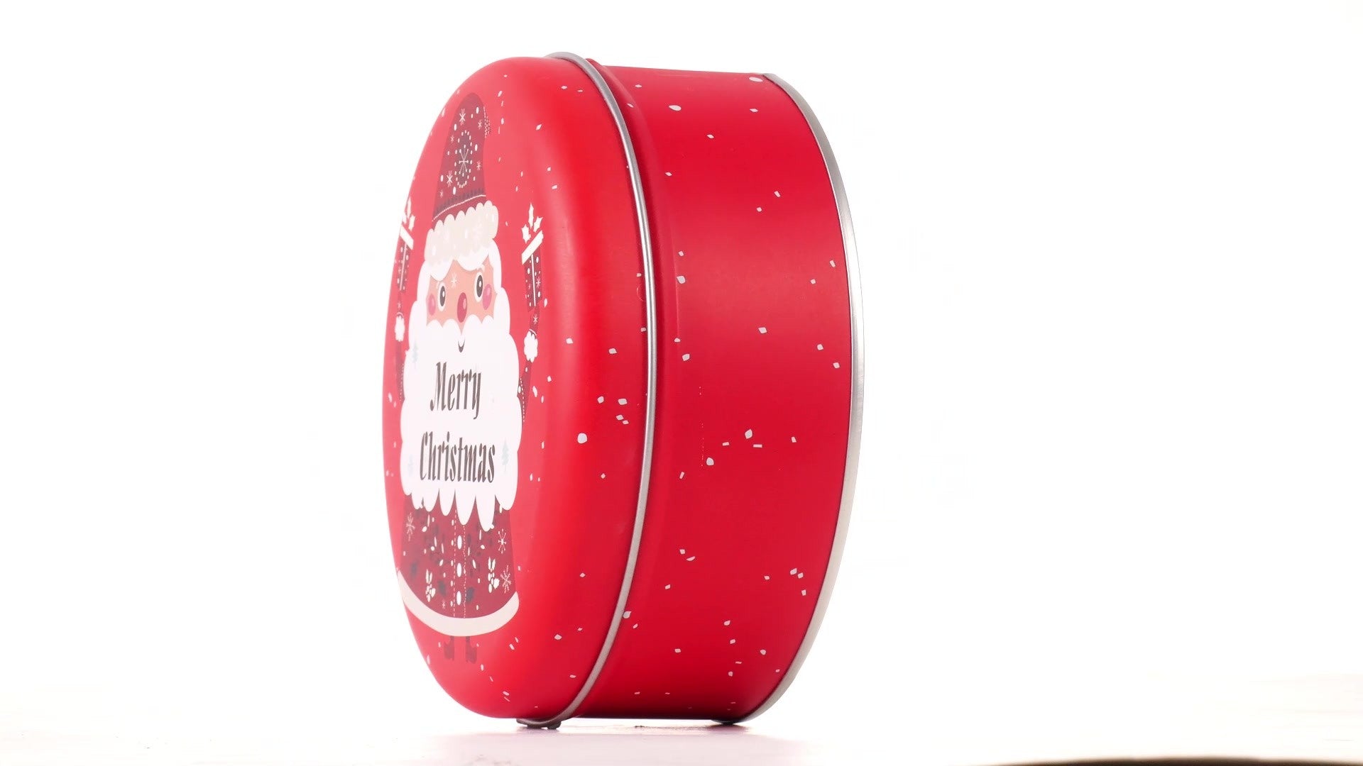 Cutie metalica rotunda rosie cu model Mos Craciun