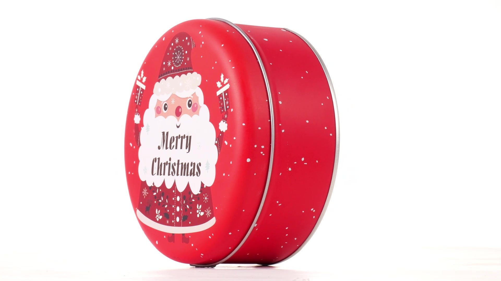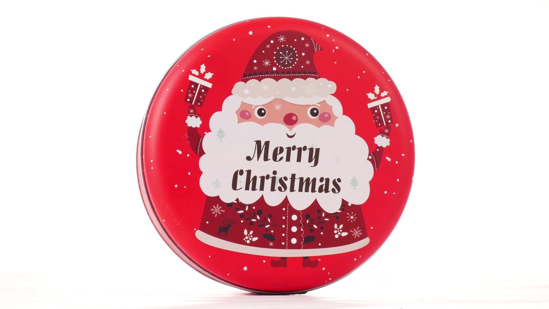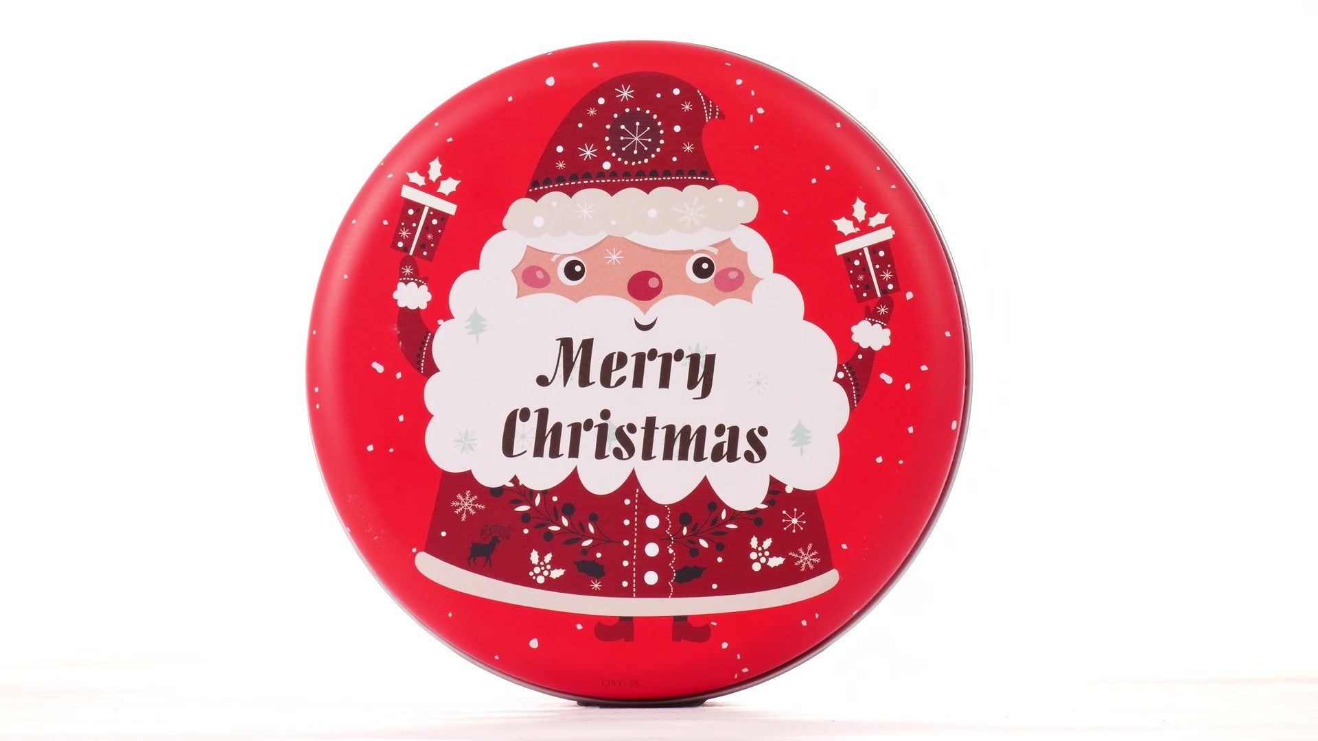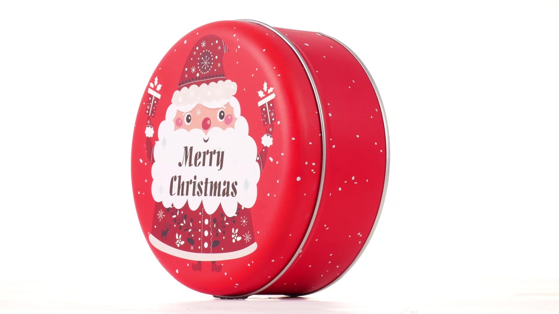 Cutie metalica rotunda rosie cu model Mos Craciun