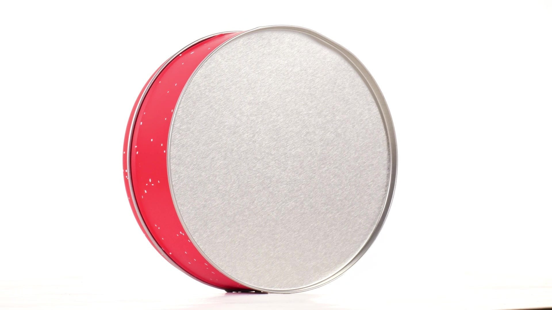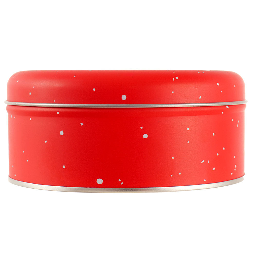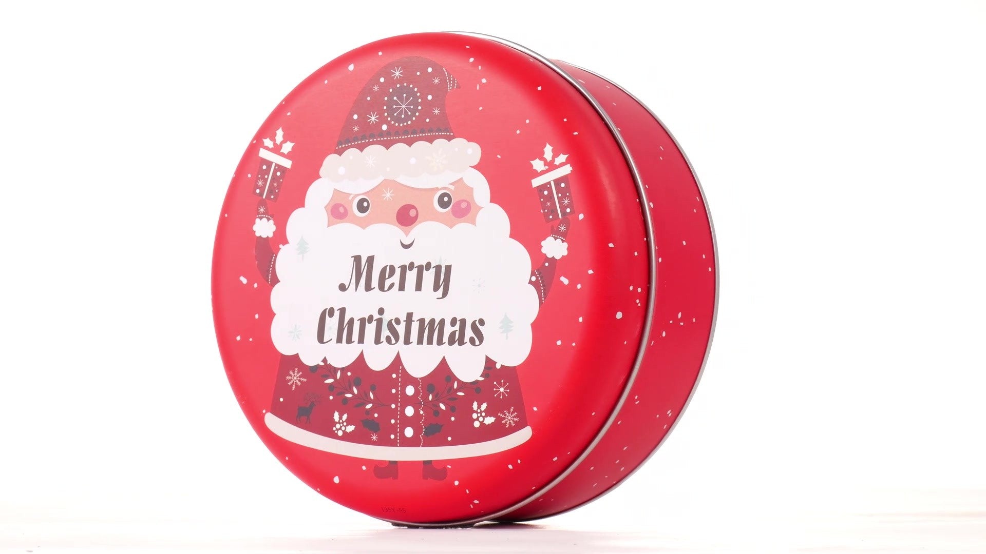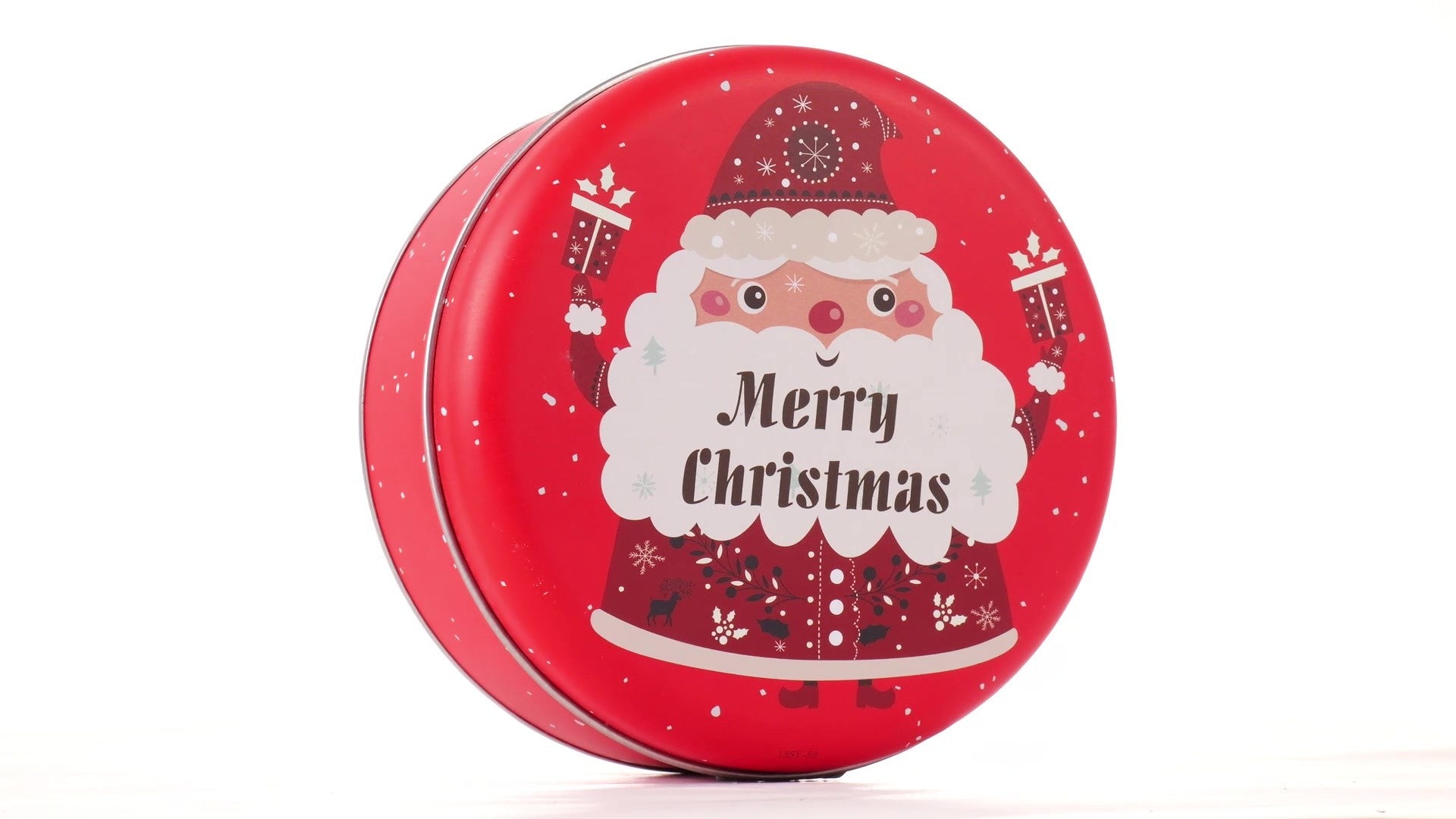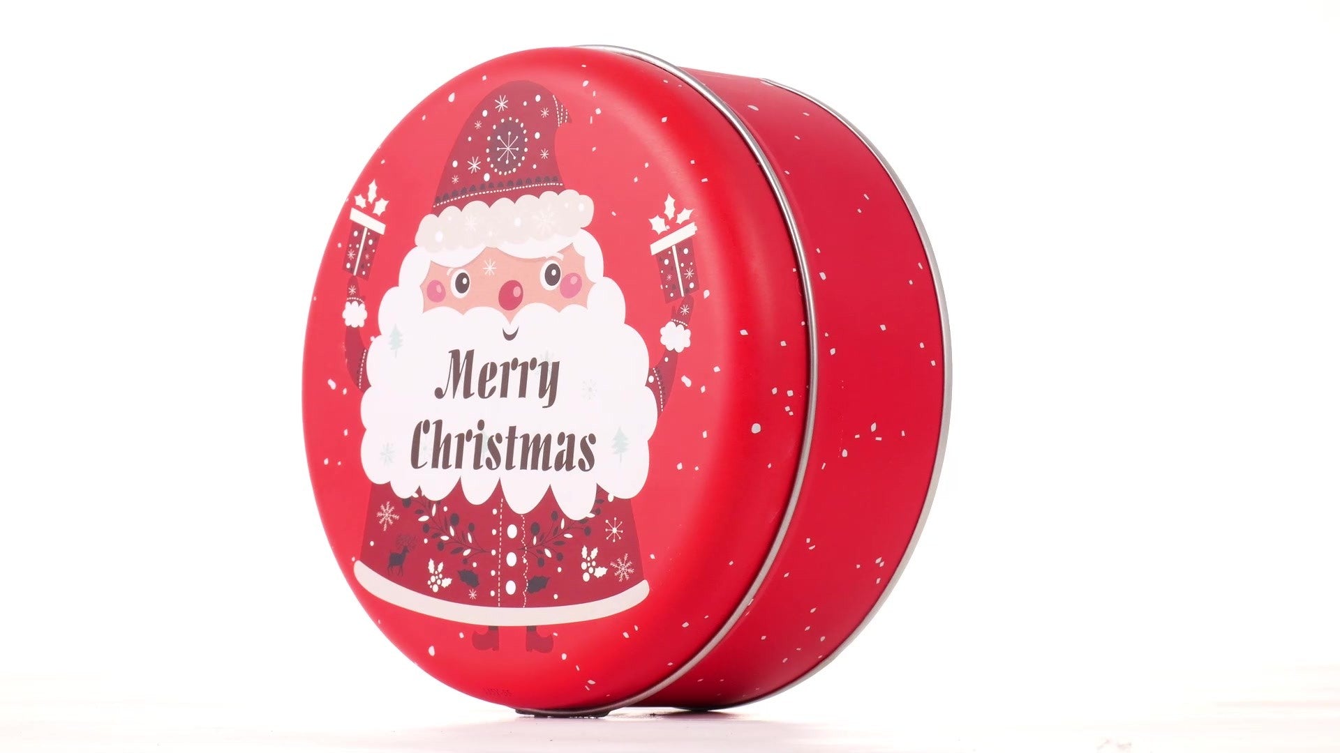 Cutie metalica rotunda rosie cu model Mos Craciun