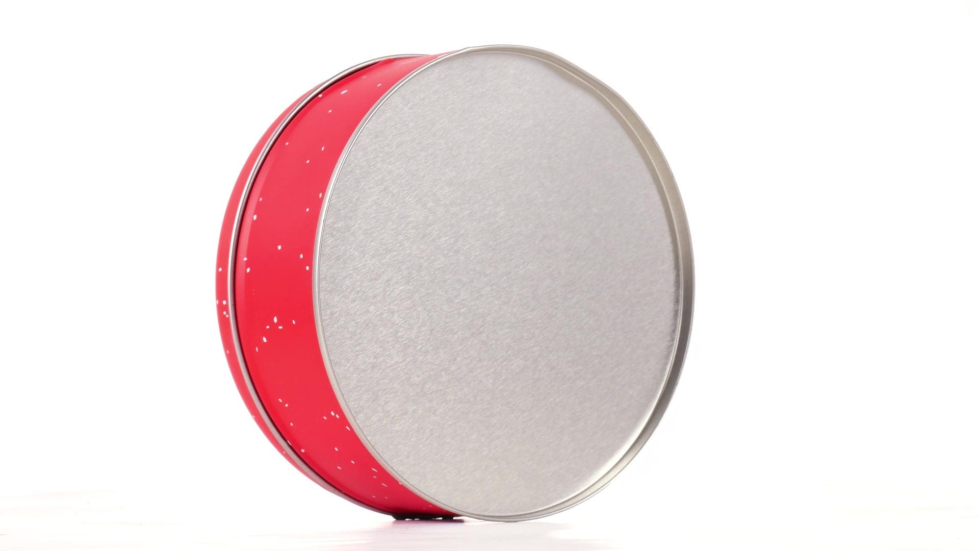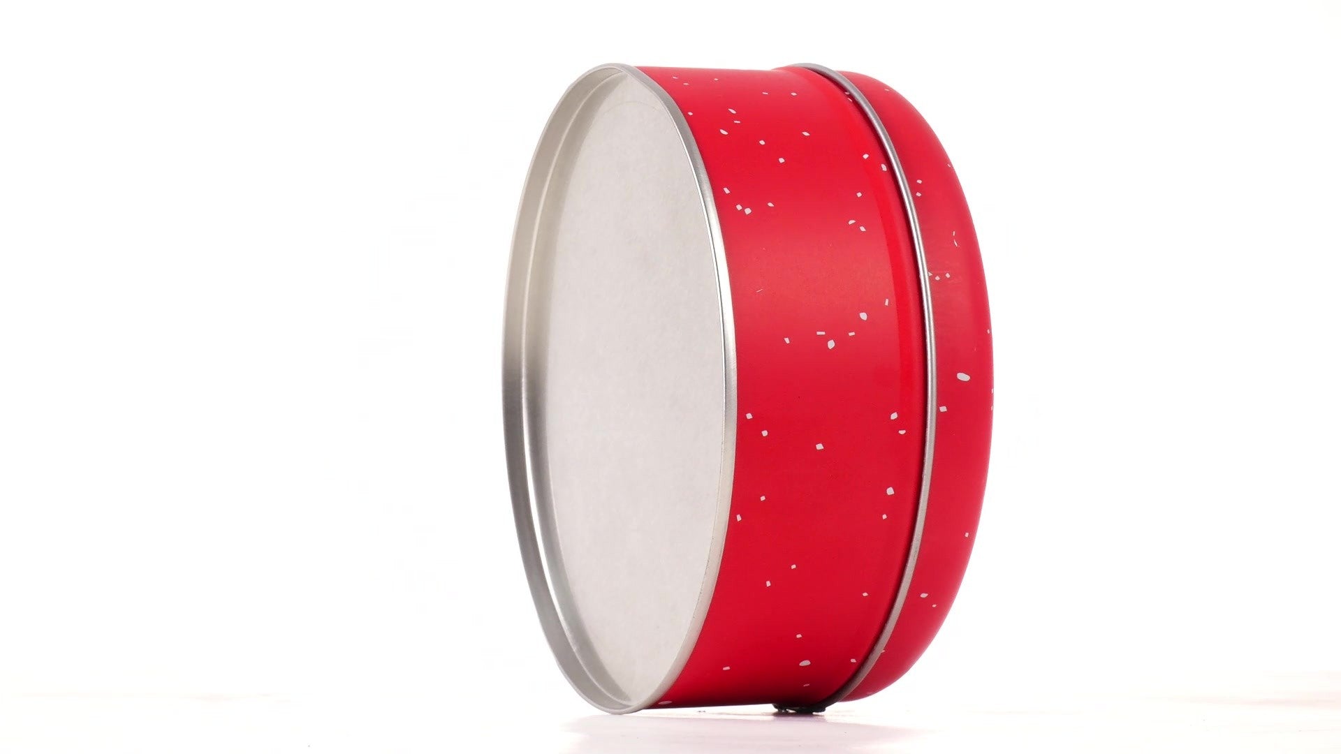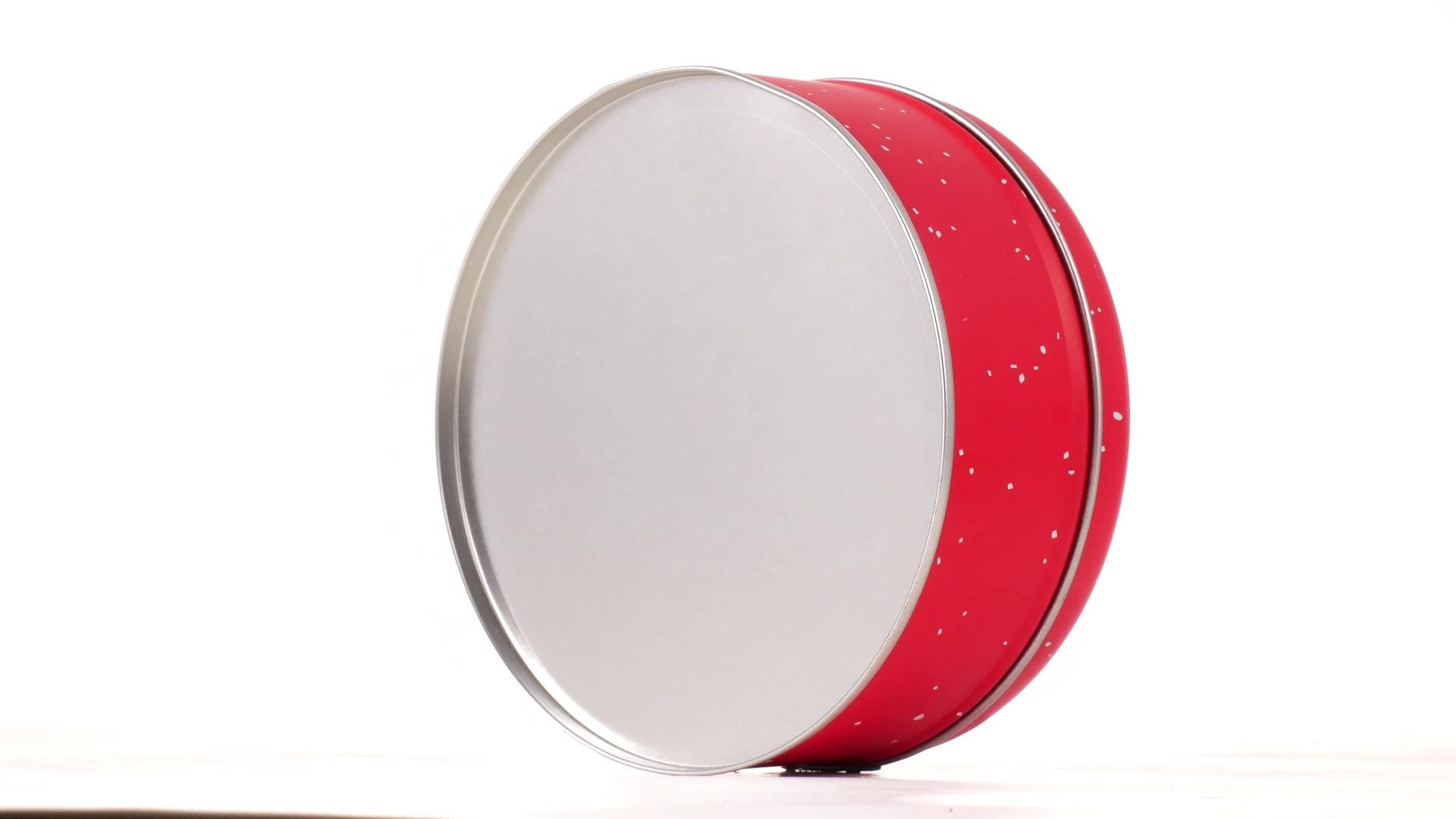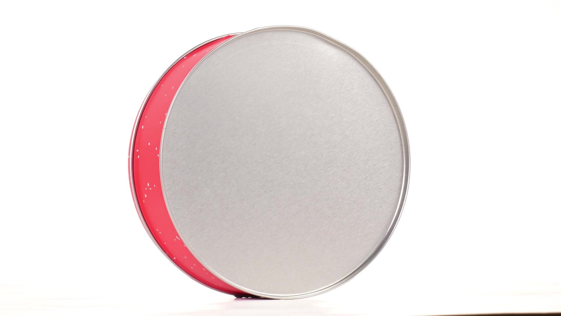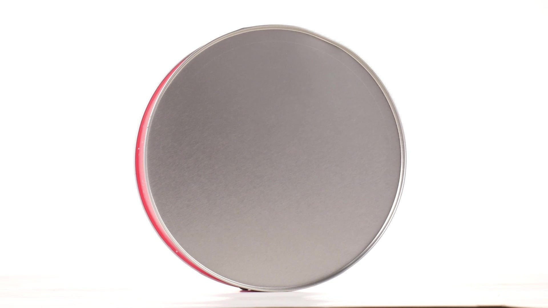 Cutie metalica rotunda rosie cu model Mos Craciun