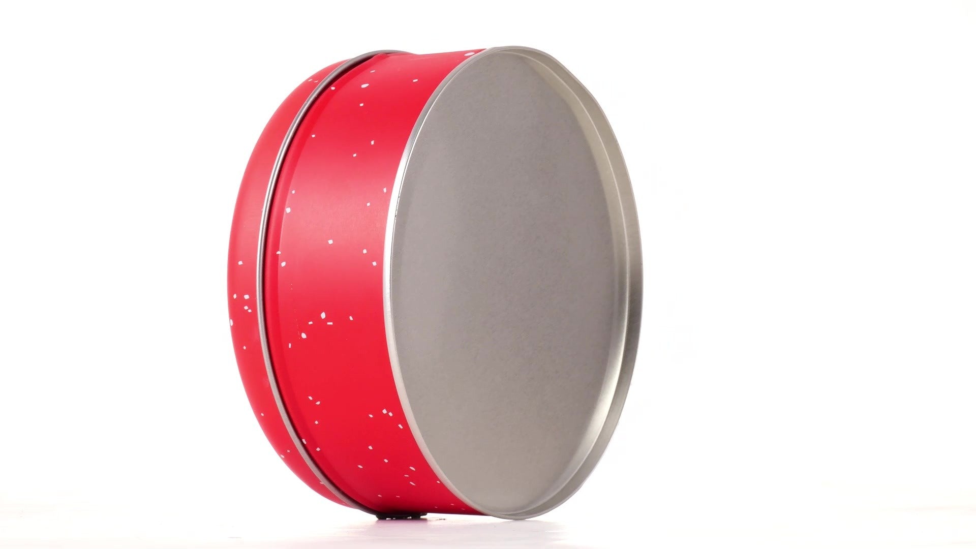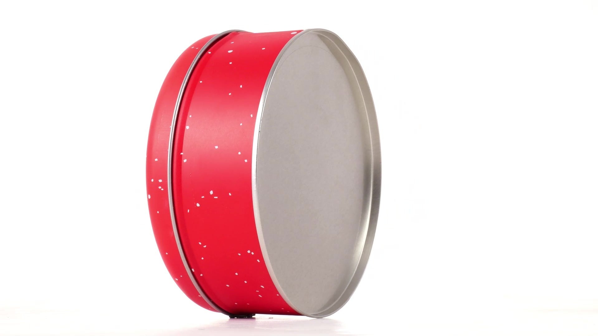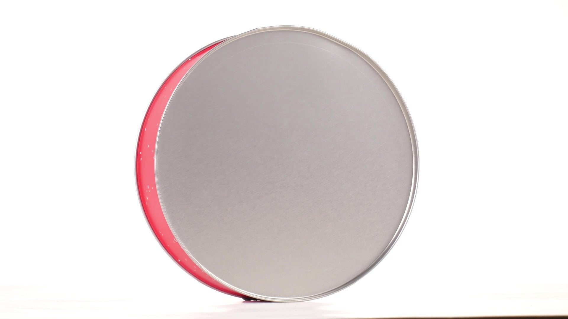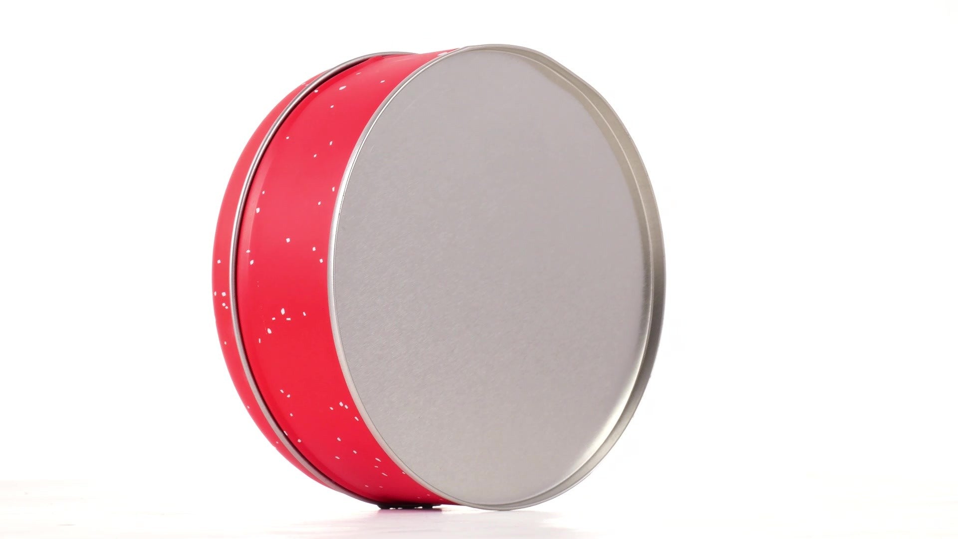 Cutie metalica rotunda rosie cu model Mos Craciun