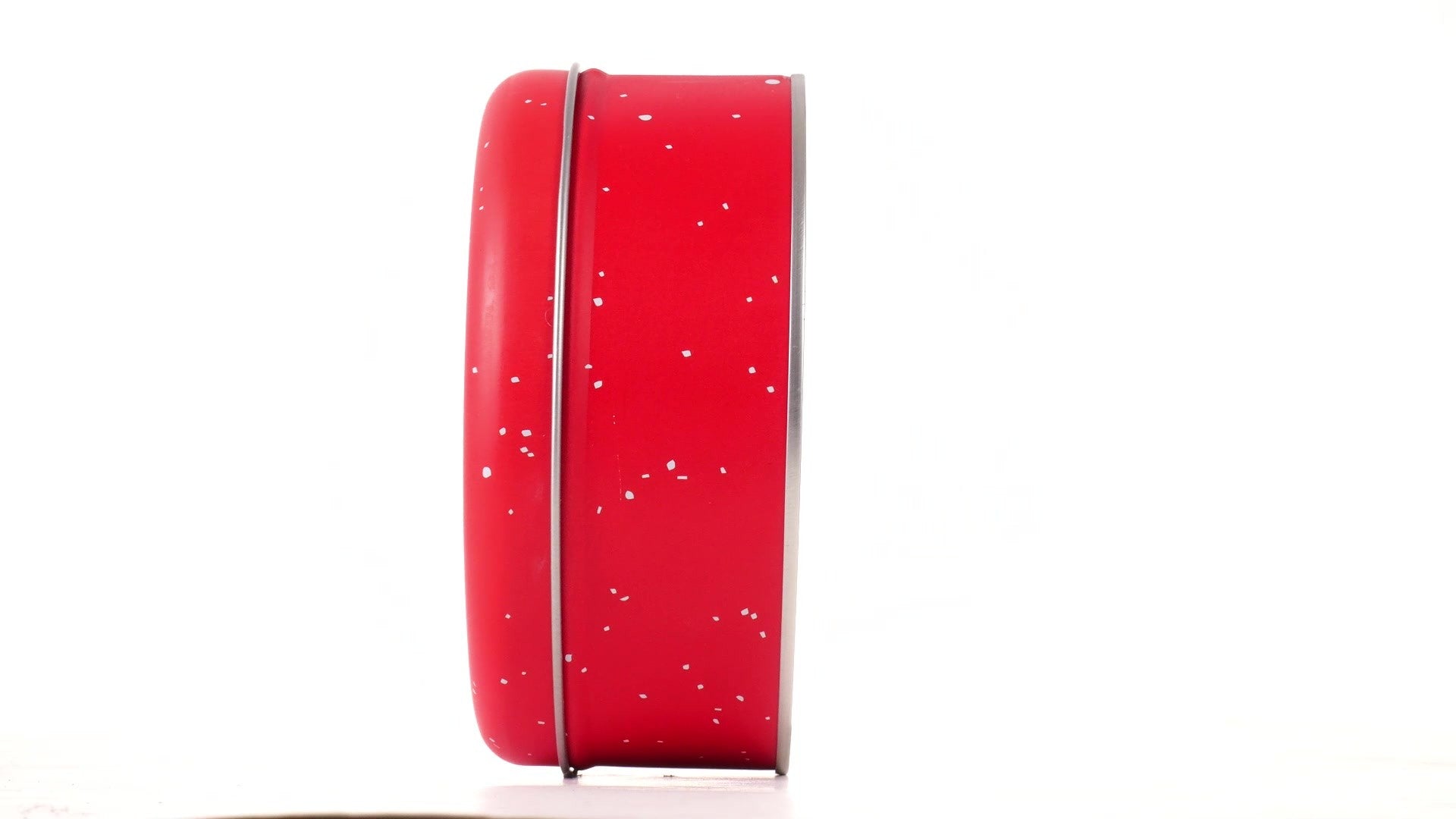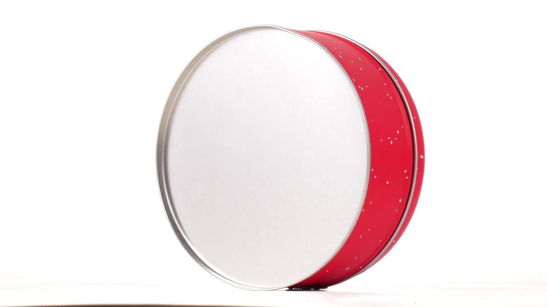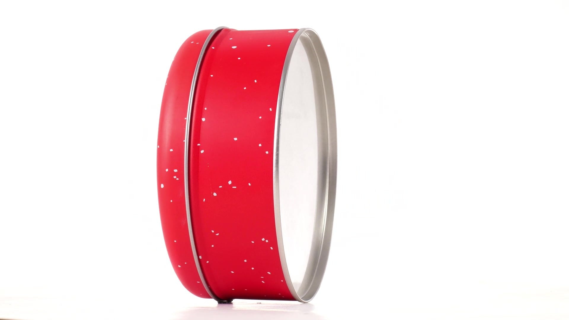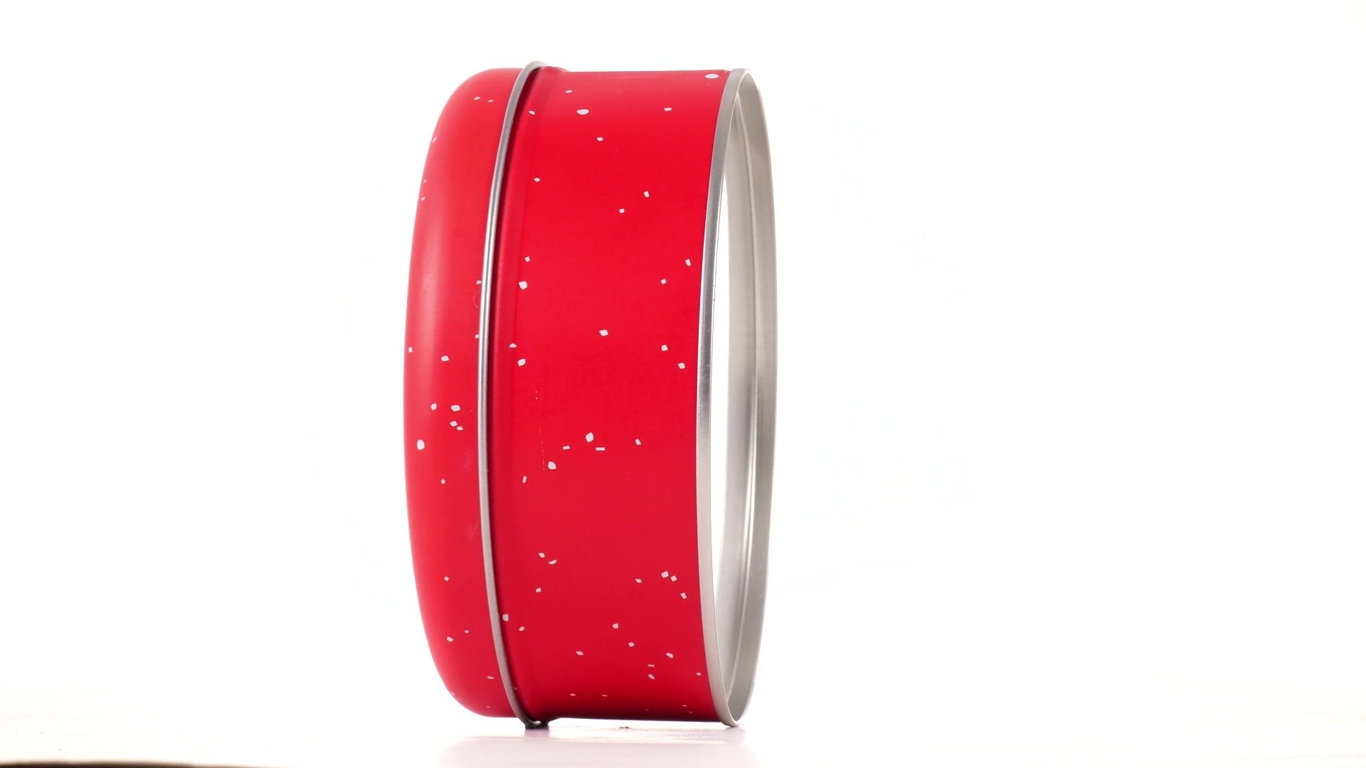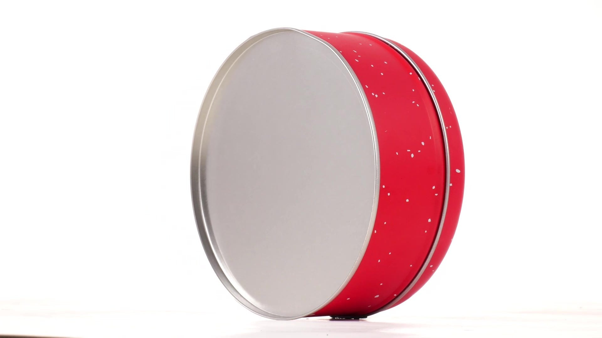 Cutie metalica rotunda rosie cu model Mos Craciun