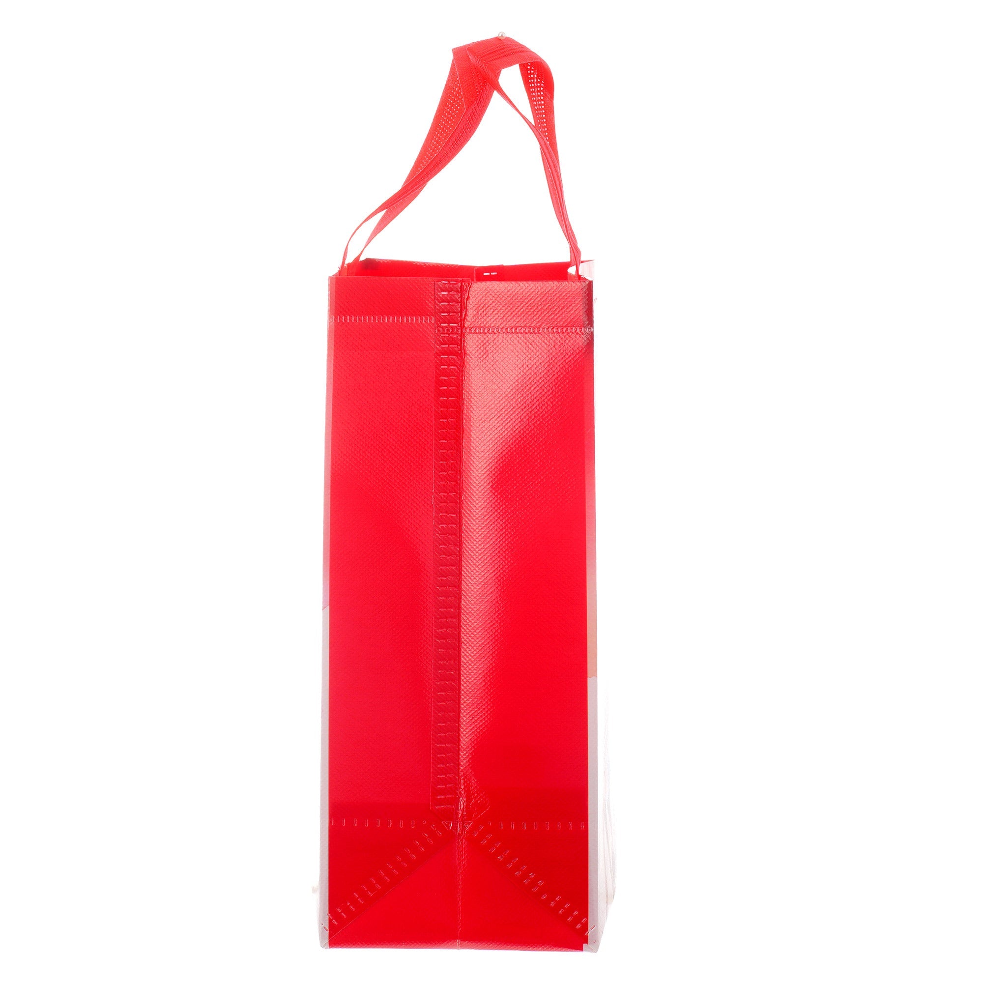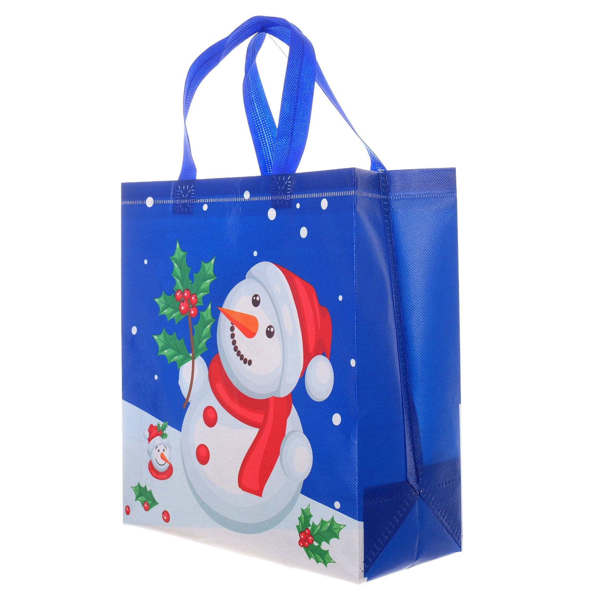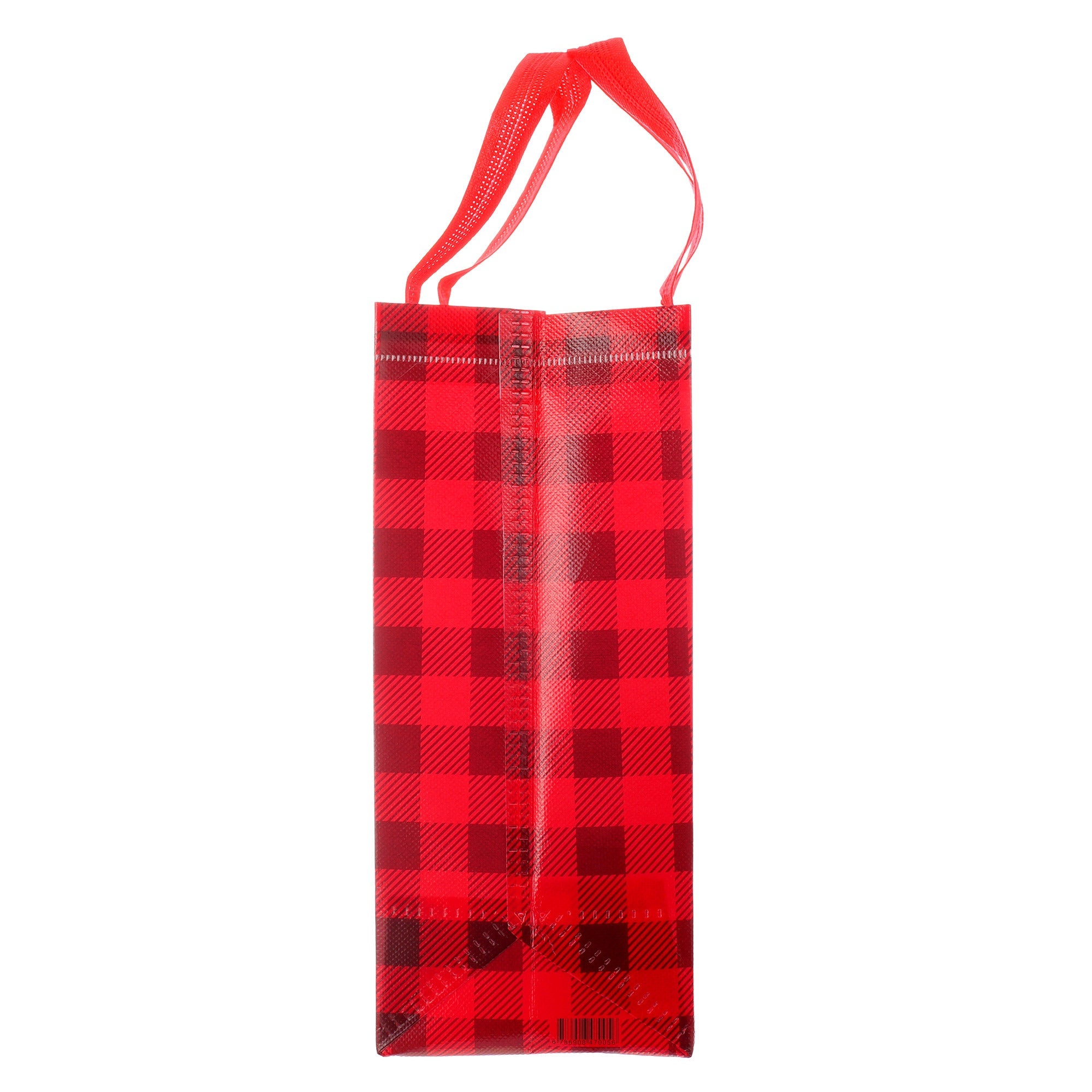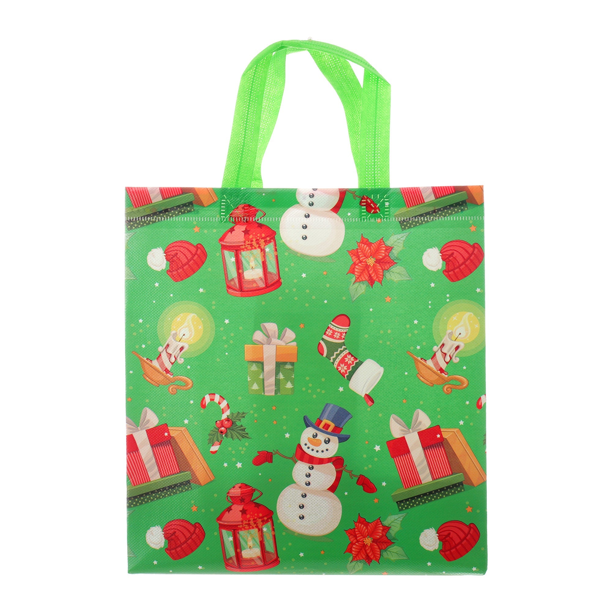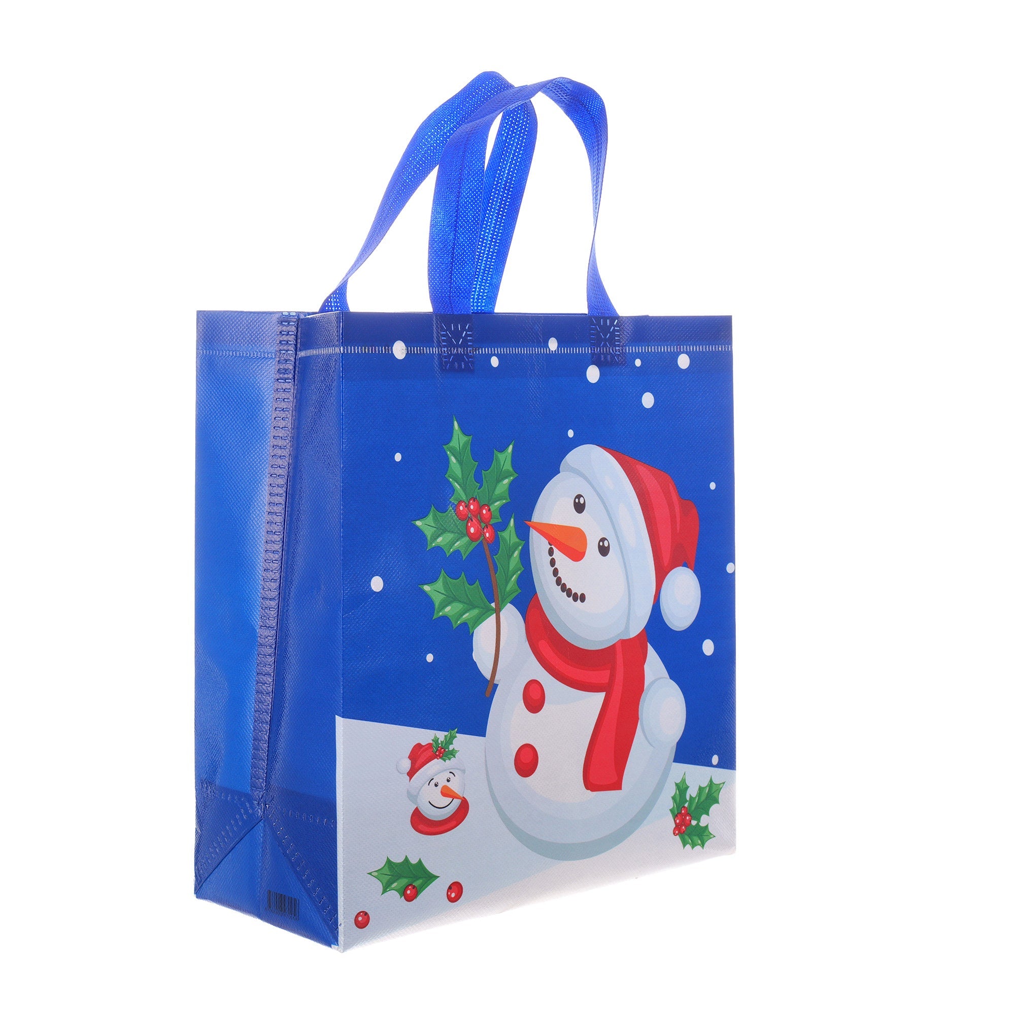 Sacoșă textilă reutilizabilă cu tematică de Crăciun, realizată din polipropilenă netesută (non-woven), rezistentă și practică pentru ambalarea și transportul cadourilor de sărbători. Baza lată de 12 cm îi permite să stea în picioare, oferind stabilitate pentru obiectele ambalate.