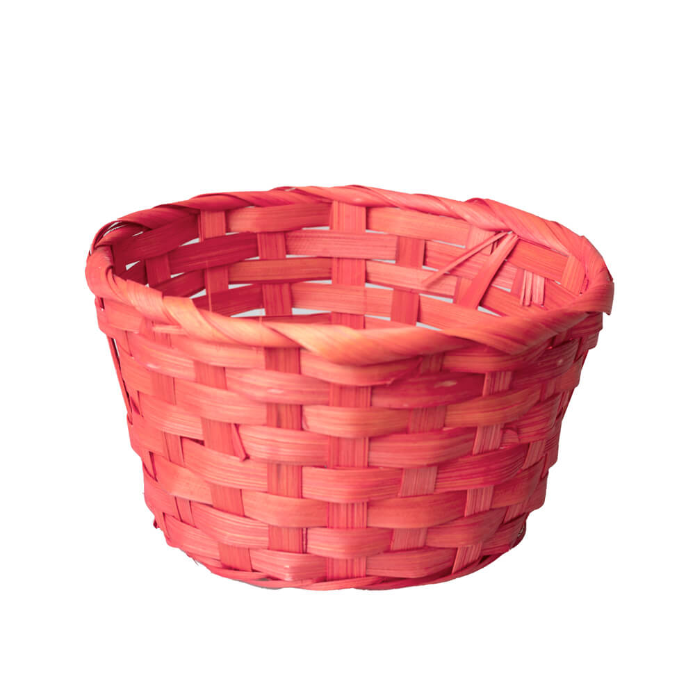 Coșuleț mediu ratan rotund cu mâner 18x10cm - roz