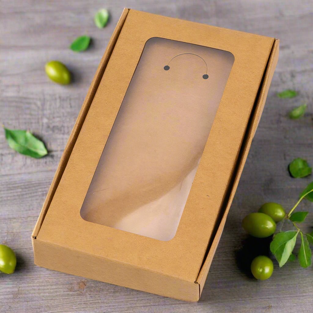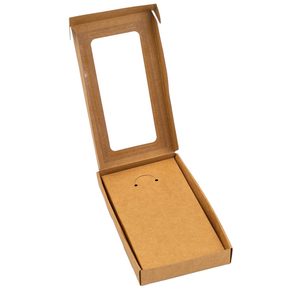 Creațiile dumneavoastră artizanale merită un ambalaj care să le reflecte frumusețea și autenticitatea. Această cutie din carton kraft, cu o fereastră de prezentare generoasă, înrămează perfect bijuteriile, permițând clienților să admire detaliile delicate, protejând în același timp piesa de praf și atingeri.