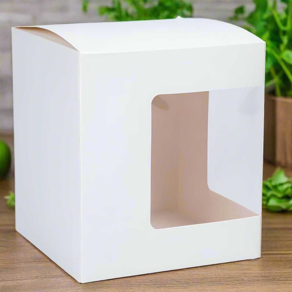 Cutie pătrată din hârtie cu fereastră pe o parte - alb (set 50 buc) 11x10.5x12.4cm