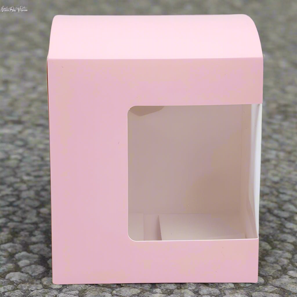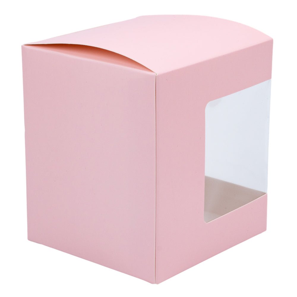 Cutie pătrată din hârtie cu fereastră pe o parte - roz (set 50 buc) 11x10.5x12.4cm