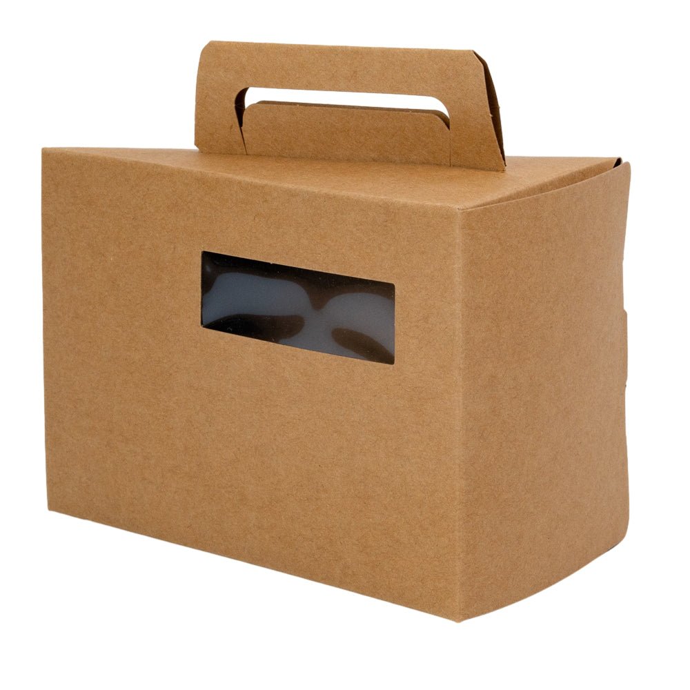 O cutie modernă și versatilă, cu o culoare naturala, cu o formă triunghiulară distinctivă și un mâner integrat. Este ambalajul ideal pentru a prezenta cu stil și simplitate porții individuale de dulciuri, felii de tort, sandviciuri mici sau mici surprize, adăugând o notă de eleganță oricărei prezentări.